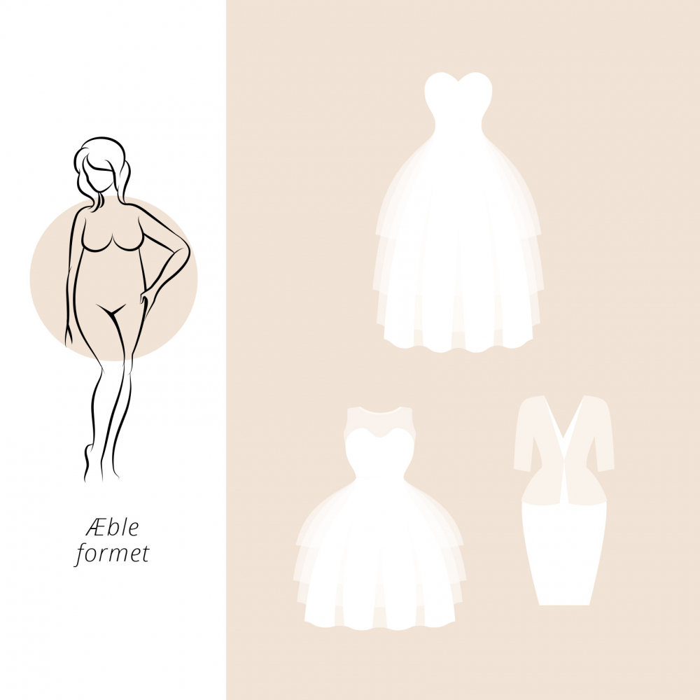 Med en æbleformet krop har du mellemstore skuldre, stor barm, taljen er ikke så tydelig, mellemstore hofter, en lille bagdel og slanke ben.