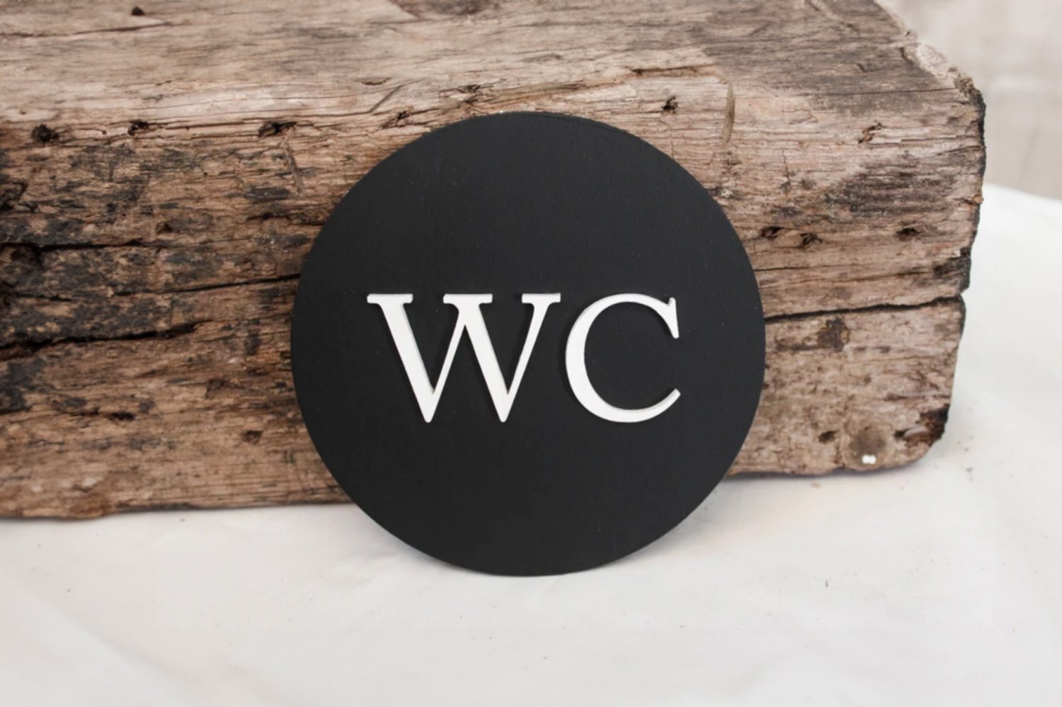 Akrylskilt med udskåret bogstaver til toilet. Skiltet kan blandt andet bruges til café, restaurant, butik eller kontorlokale. De kan nemt fastgøres ved hjælp af dobbeltklæbende tape.