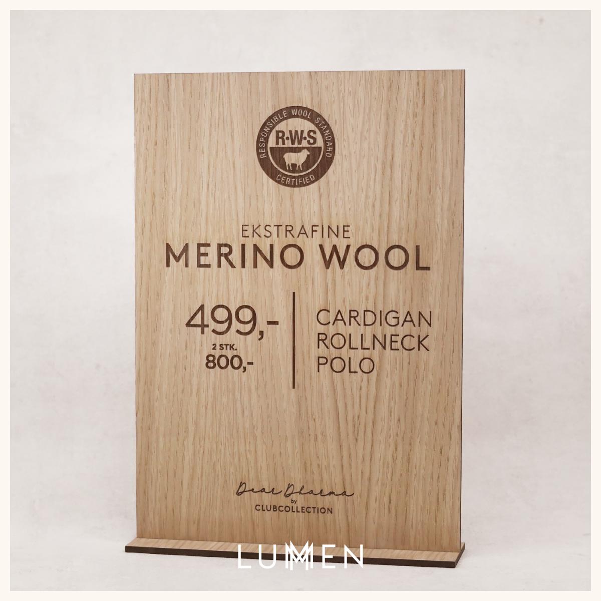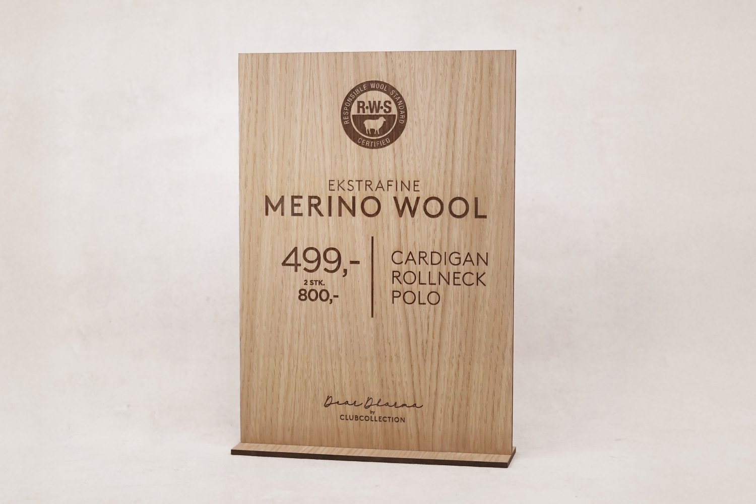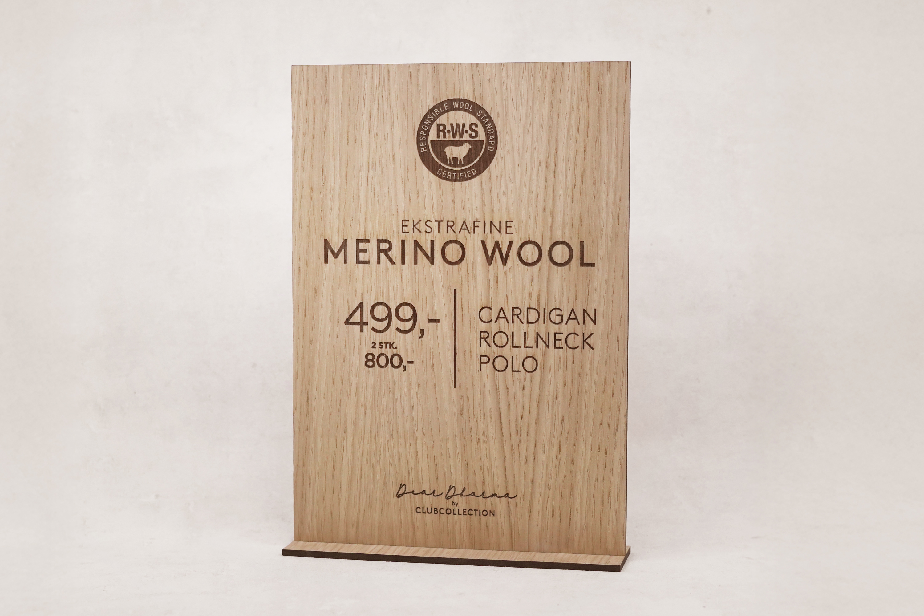 Fremstilles af træ med gravering. Alle træsorter er naturmaterialer og vil derfor variere i både farve og tekstur. Læs mere om kvalitet »