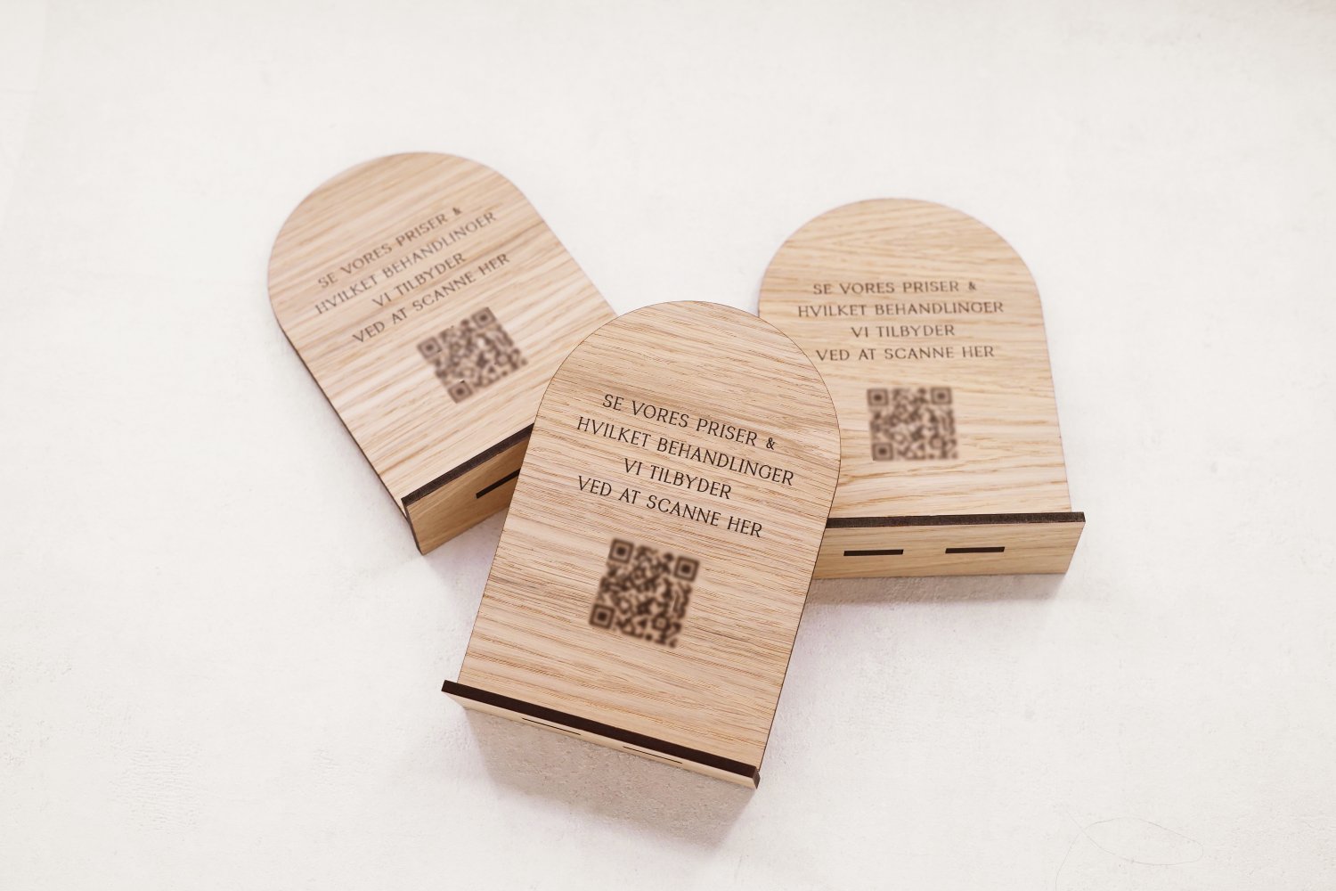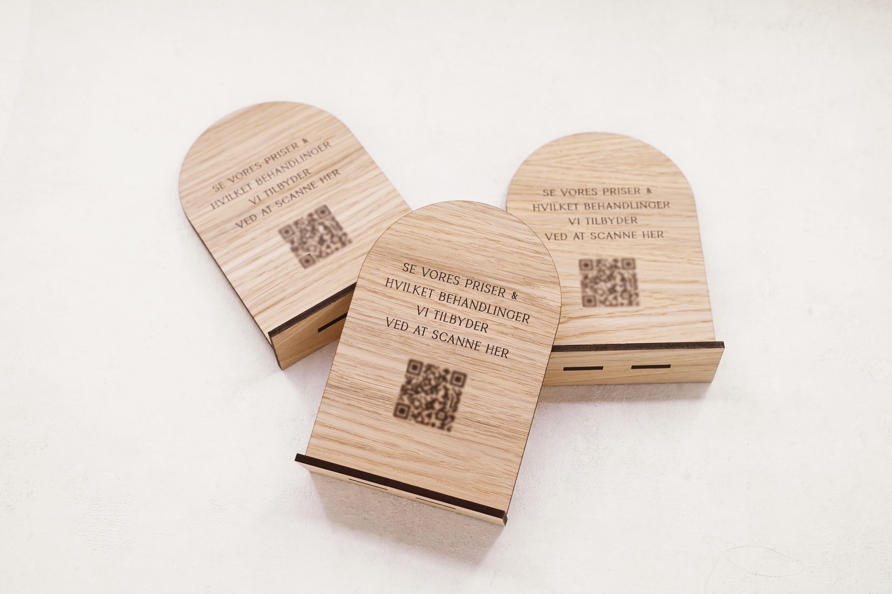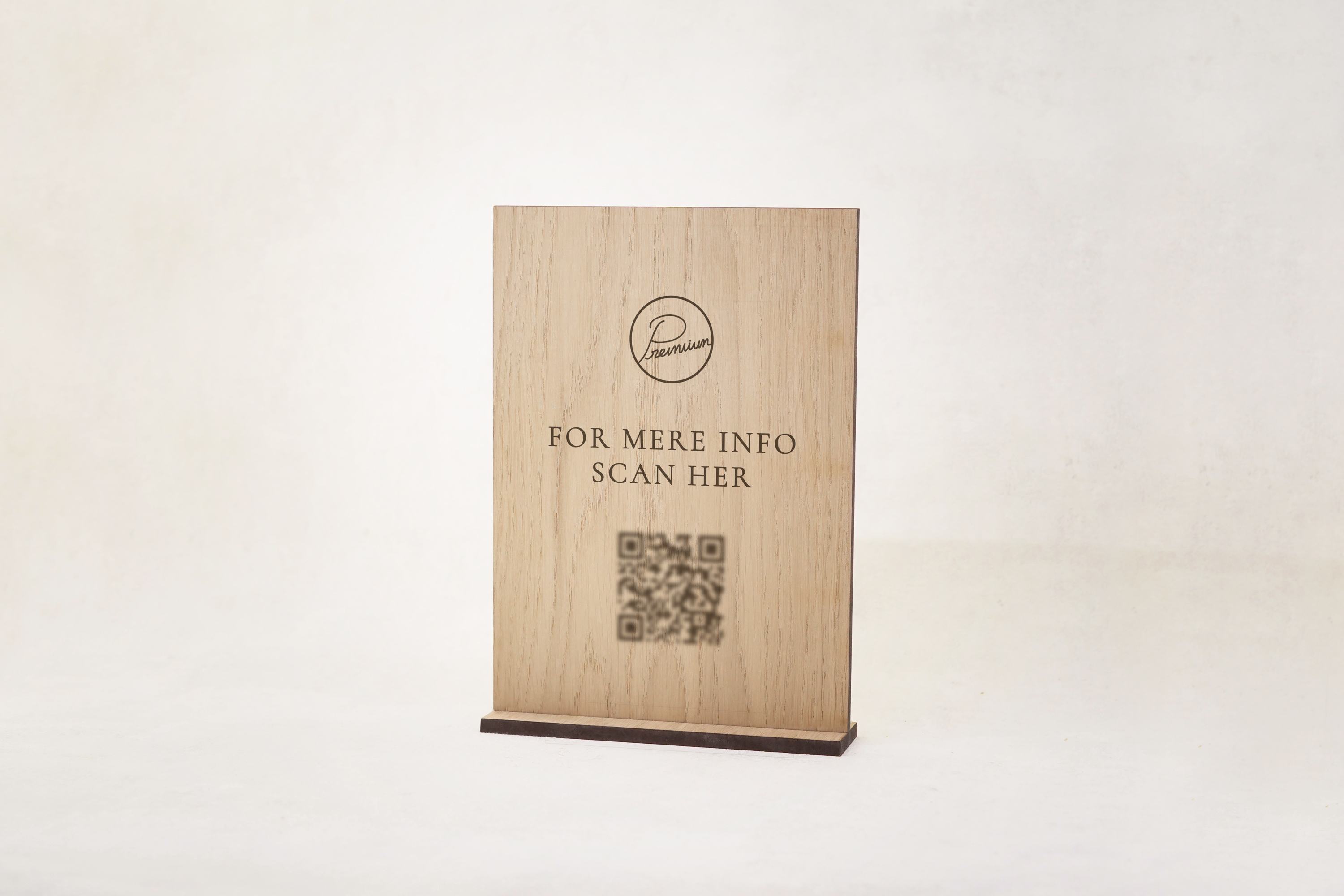 A6 infoskilte i træ er en stilfuld og tilpasselig løsning til butikker og virksomheder. Skiltene kan formes efter behov, med mulighed for at tilføje fri tekst. En rustik og stilfuld detalje til enhvert sted, der samtidig kommunikerer vigtige oplysninger på en elegant måde.