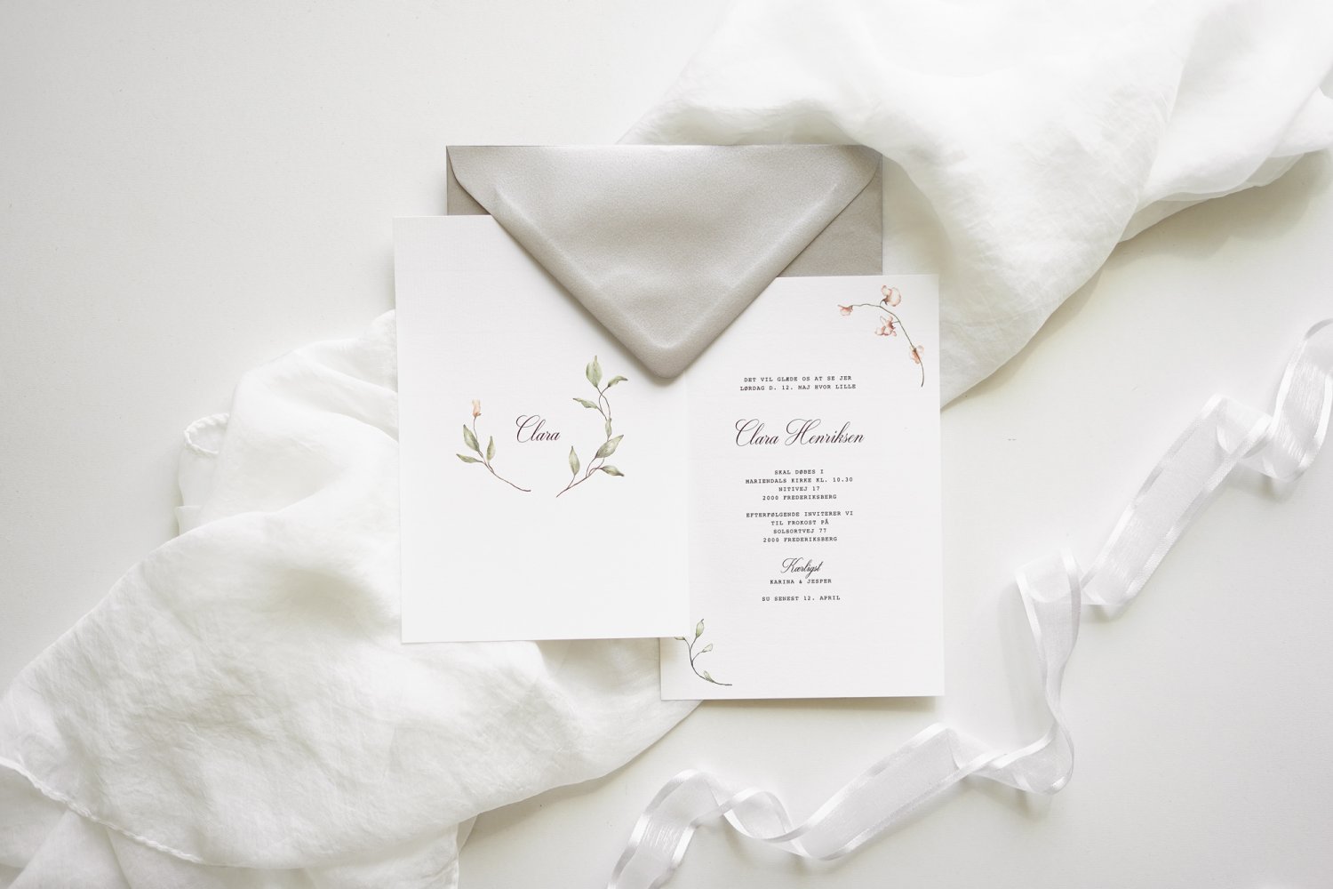 Læs om de forskellige materialer vi bruger til vores invitationspakker. Materiale info »