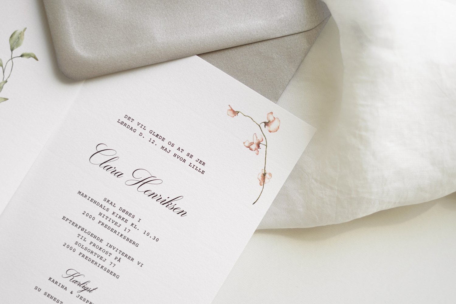 Skab en naturlig og forfriskende stemning omkring din babys dåb med vores håndlavede dåbsinvitationer med akvarelblomster. Disse invitationer inviterer du dine kære til at deltage i en særlig begivenhed, der markerer dit barns start på livet og skaber forventning om en uforglemmelig dag.