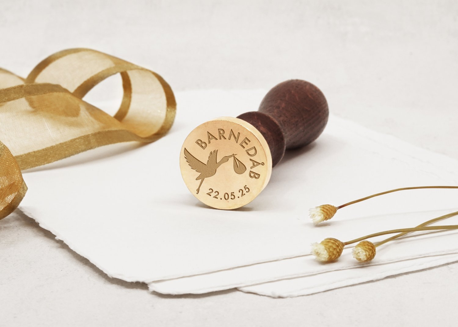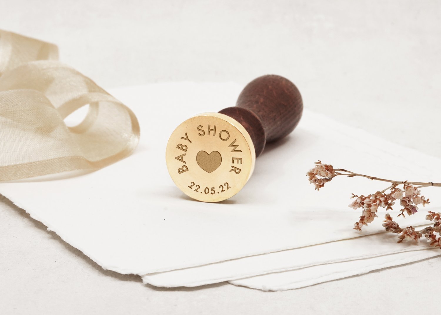 Lakseglstempler med søde motiver til fejring af de mindste. Brug stemplet til indbydelserne og dekorationer til baby shower.