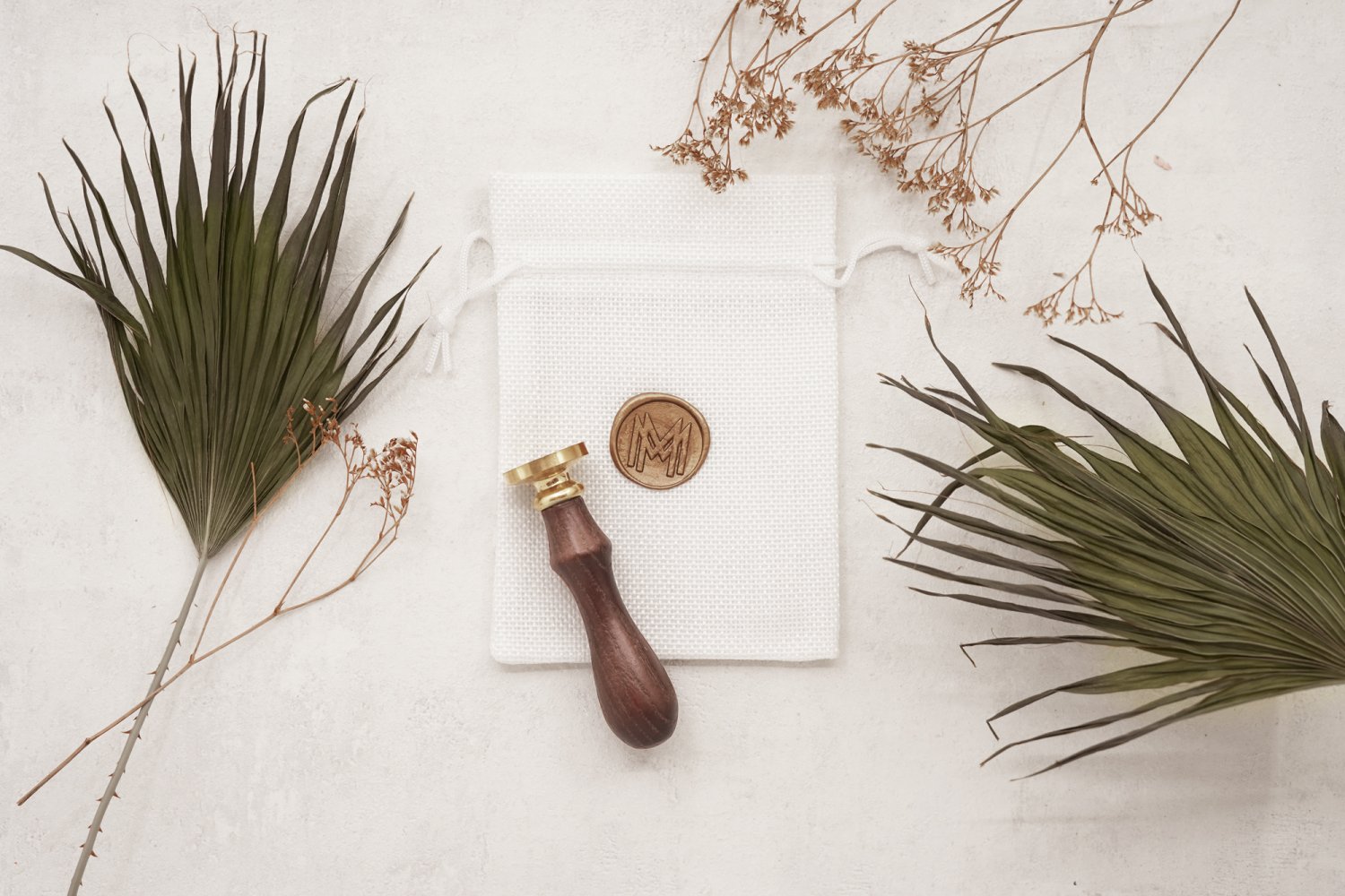 Stemplet fremstilles af messing, graveret med motivog skrues på et massivt træskaft. Font og størrelse kan ikke ændres.
