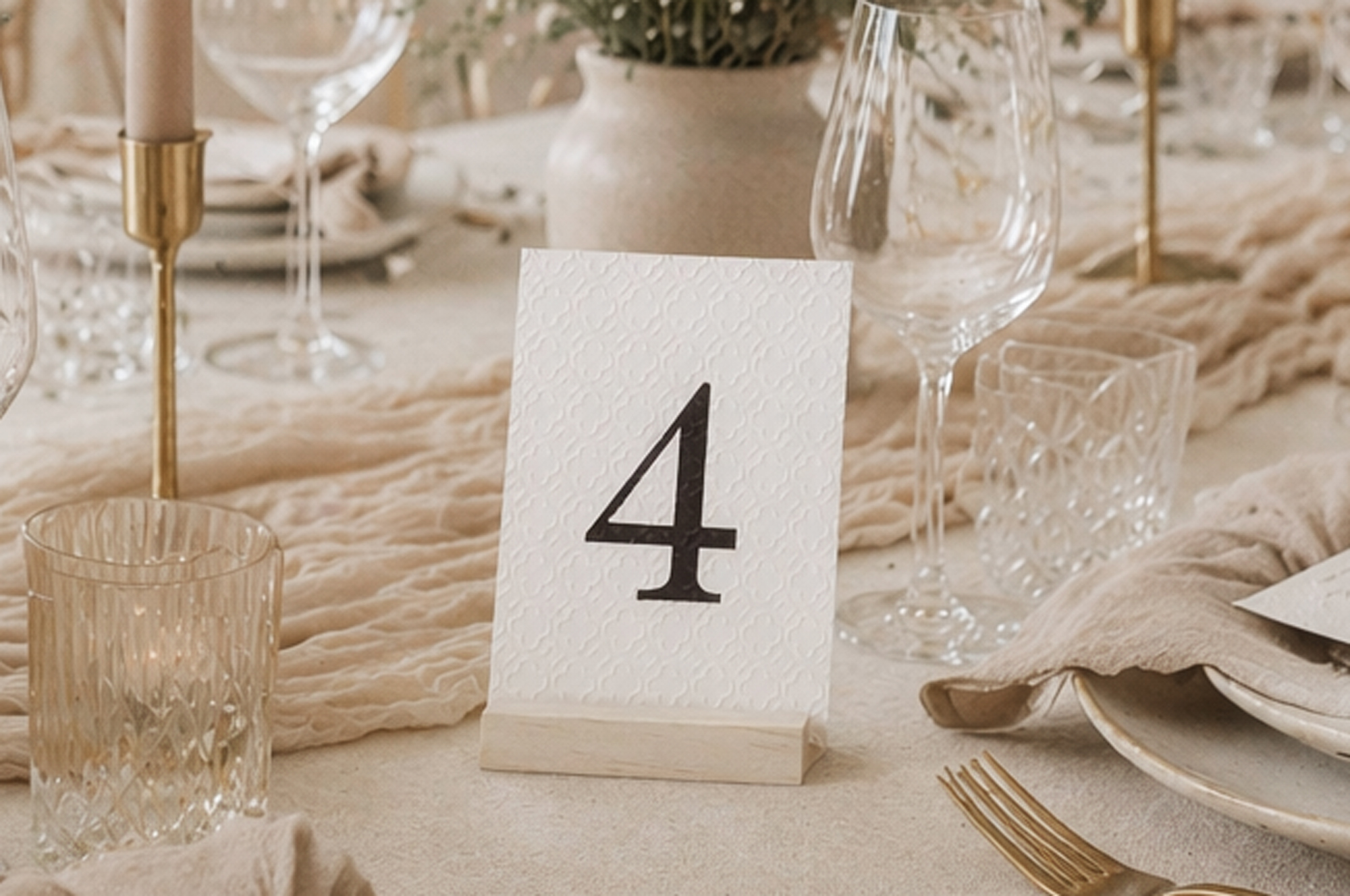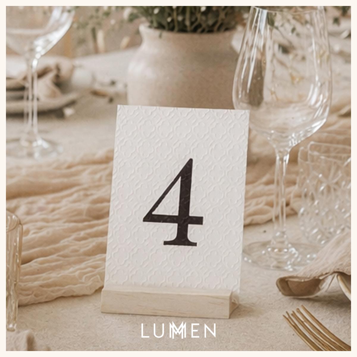 Stilfulde bordnumre til bryllup med valgfrit håndpræget mønster, der tilfører dybde og eksklusivitet til borddækningen.