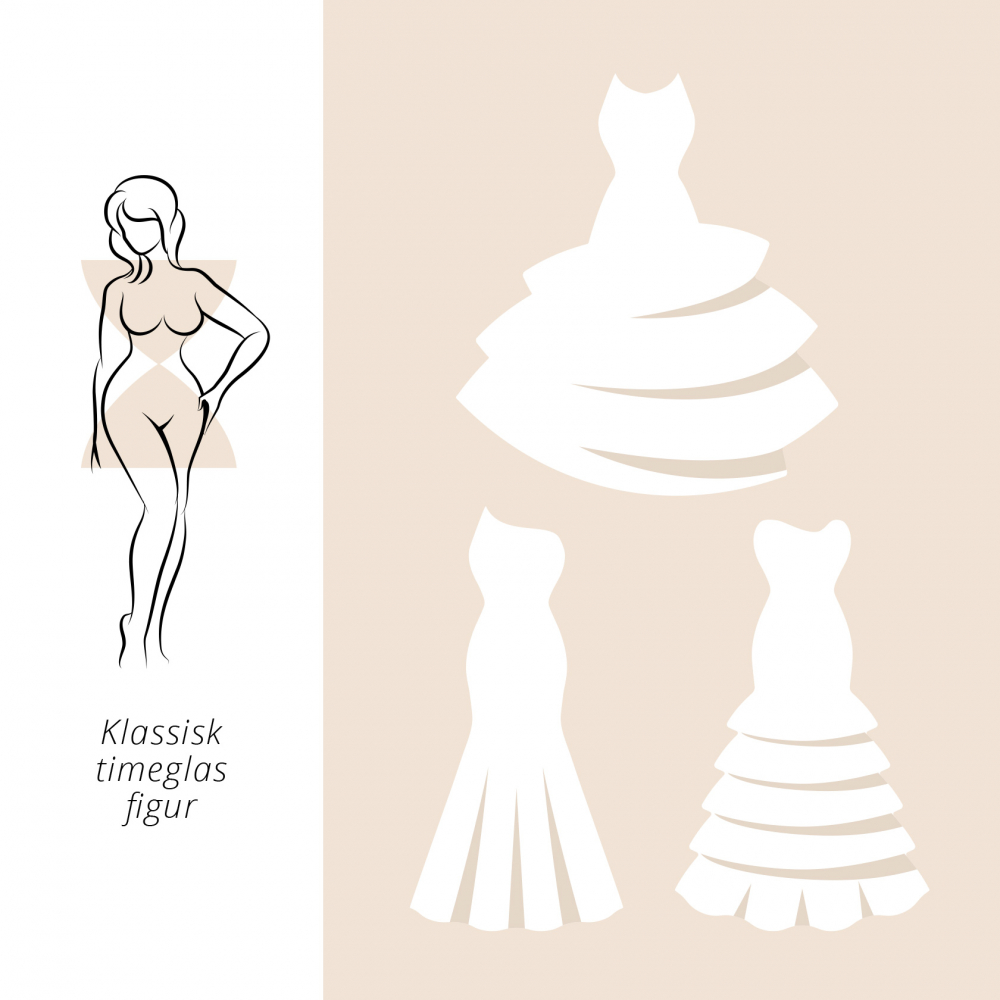 Hvis du har en klassiske timeglas figur betyder det, at du har mellemstørrelse skuldre, en fyldig barm, smal talje, brede hofter og mellemstørrelse ben.