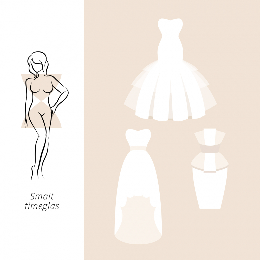 Hvis du har en smal timeglas figur betyder det, at du har mellemstørrelse skuldre, en forholdsvis lille barm, smal talje, smalle hofter og lange slanke ben.