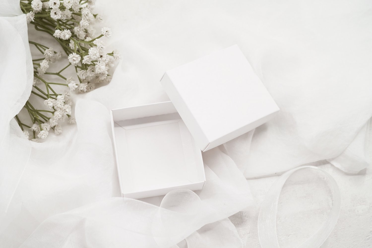 Overrask jeres gæster med hvide bryllupsfavor gaveæsker, dekoreret med akvarelblomster og personliggjort med deres navne. Disse smukke æsker tilføjer en unik og elegant touch til jeres bryllupsfest.