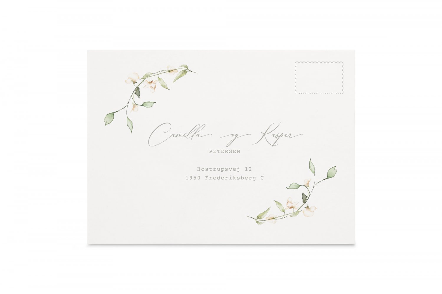 Tak gæsterne for deres deltagelse ved jeres store dag med håndlavede takkekort. På forsiden trykkes brudeparrets navne og bryllupsdato, mens der på bagsiden er trykt "Tusind tak" med plads til at skrives en personlig tekst i hånden til hver gæst.