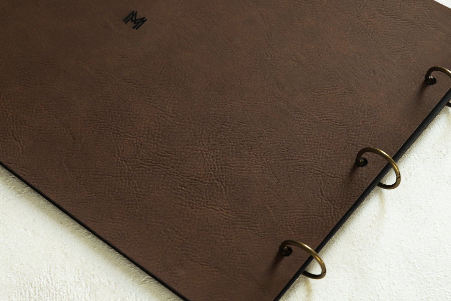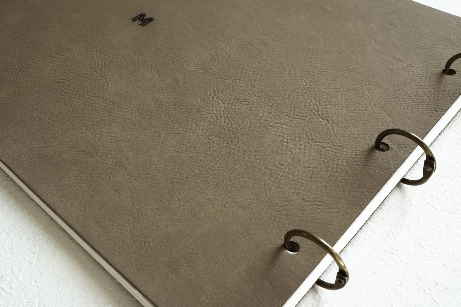 For- og bagside fremstilles af By-Cast læder, som er en kunstlæder type med 180g sorte karton sider inden i.