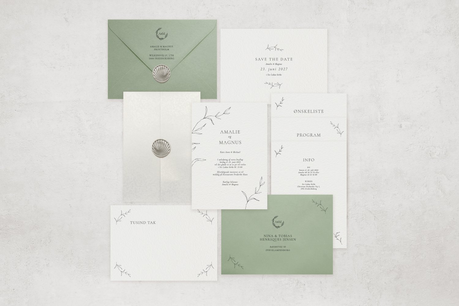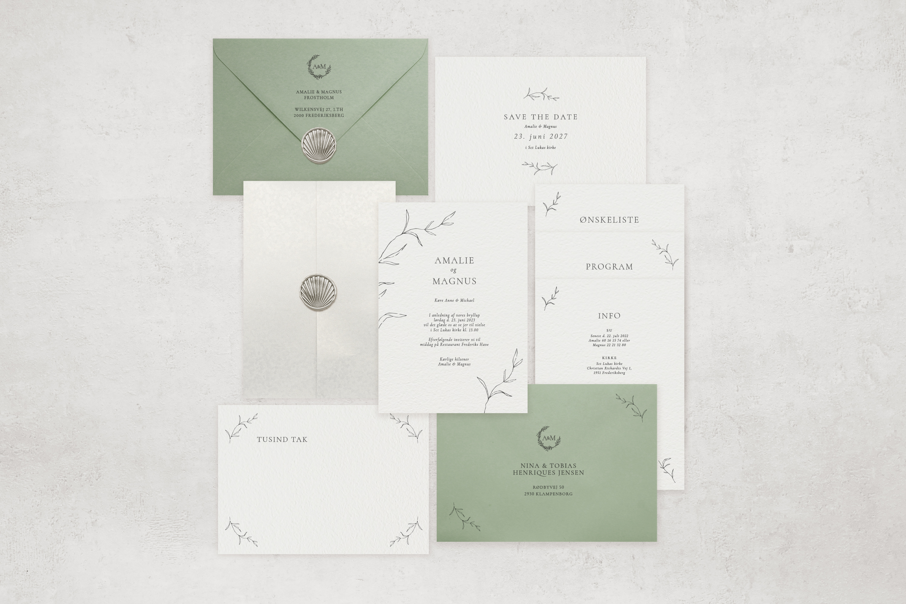 Læs her om de forskellige materialer vi bruger til vores invitationspakker. Materiale info »