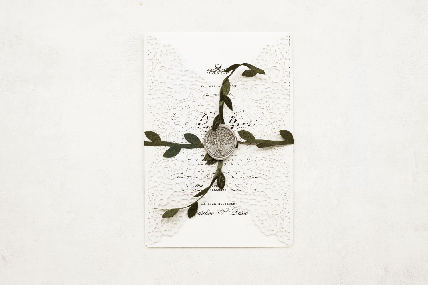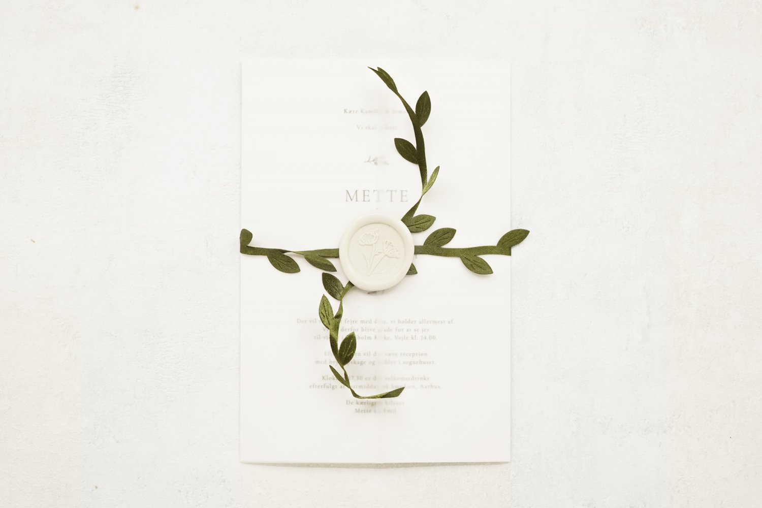 Naturinspireret bånd med små blade til udsmykning af festen. Bladbåndet kan bruges som pynt på bryllupsbordene eller bindes omkring servietten for at gøre borddækningen endnu smukkere. Perfekt til det elegante og naturinspireret fest.