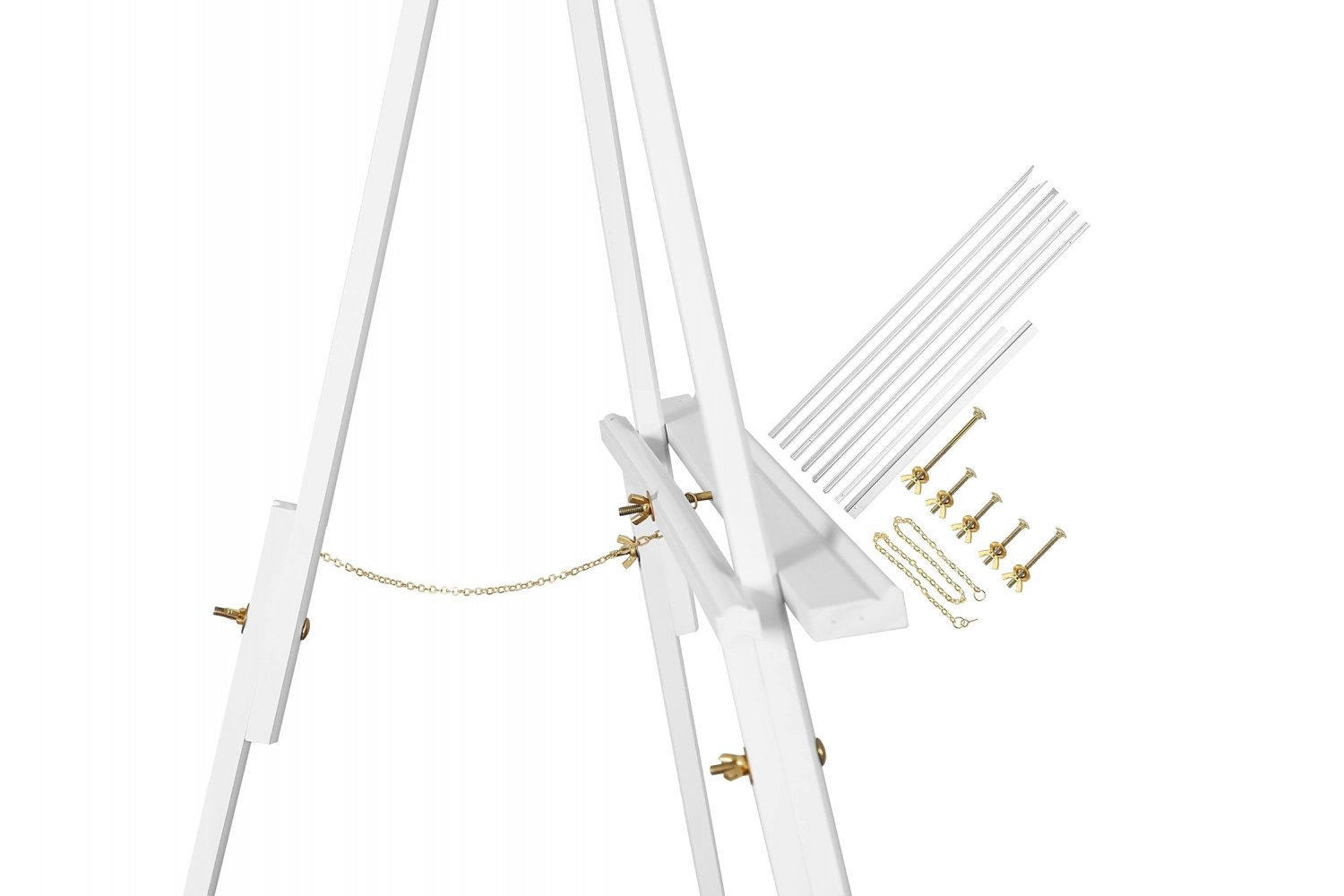 Præsentér dine produkter eller kunstværker med stil ved hjælp af vores elegante hvide kvalitets staffelier, ideelle til messer og butiksudstillinger. Disse staffelier tilbyder ikke kun holdbarhed, men også et stilfuldt udtryk, der giver en sofistikeret ramme om dine præsentationer. Staffelierne er nemme at transportere, da de er sammenklappelige.