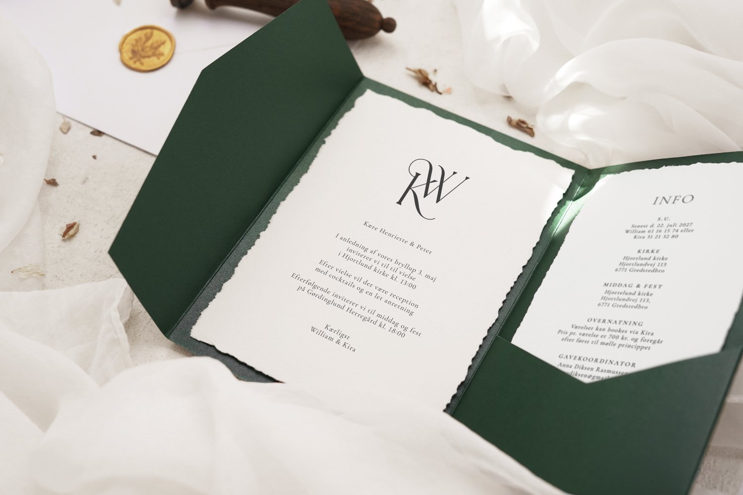 Læs her om de forskellige materialer vi bruger til vores invitationspakker. Materiale info »