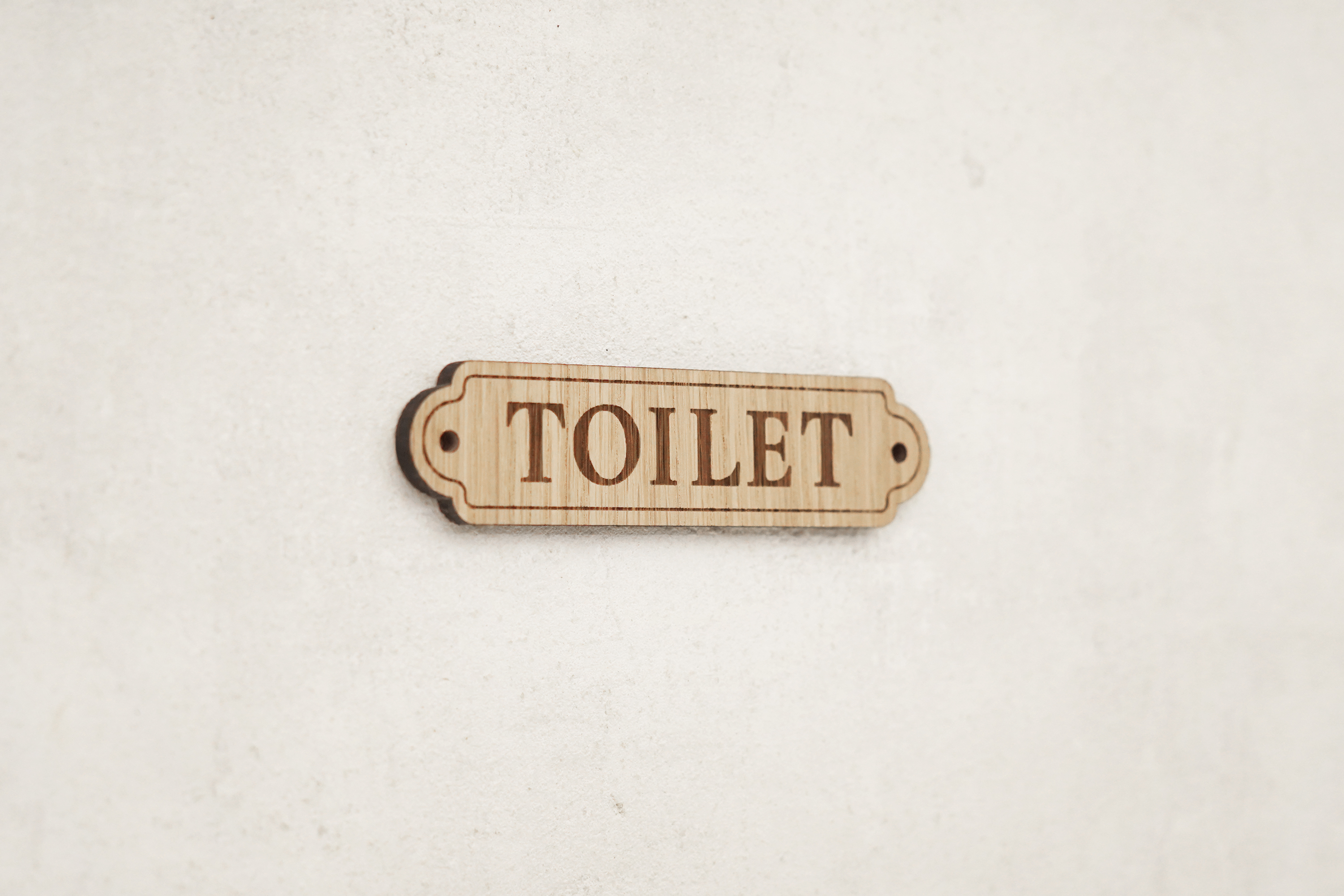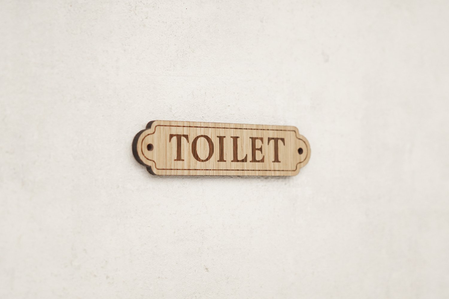 Klassisk toiletskilt i træ, enkelt og tidløst i design, som passer perfekt til hoteller, restauranter, caféer og andre steder, hvor der ønskes en elegant og indbydende atmosfære.