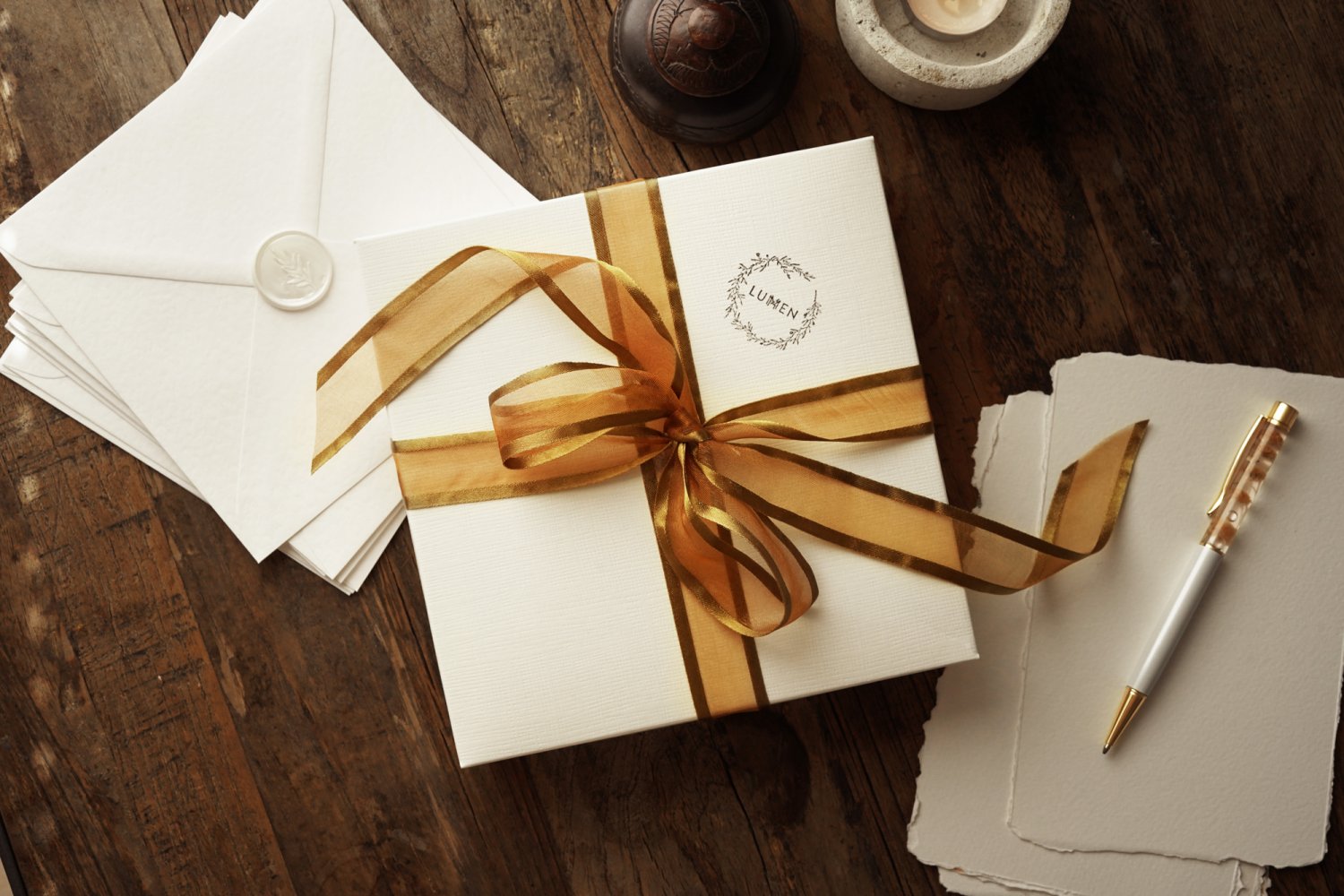Forkæl en du holder af med en luksus laksegl & stempel gaveæske fra Lumen. Æsken sammesættes efter dine valg, så du har en helt unik og personlig gave at forære.
