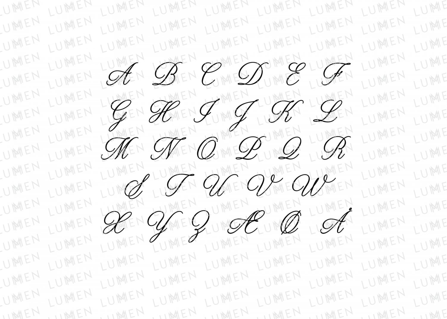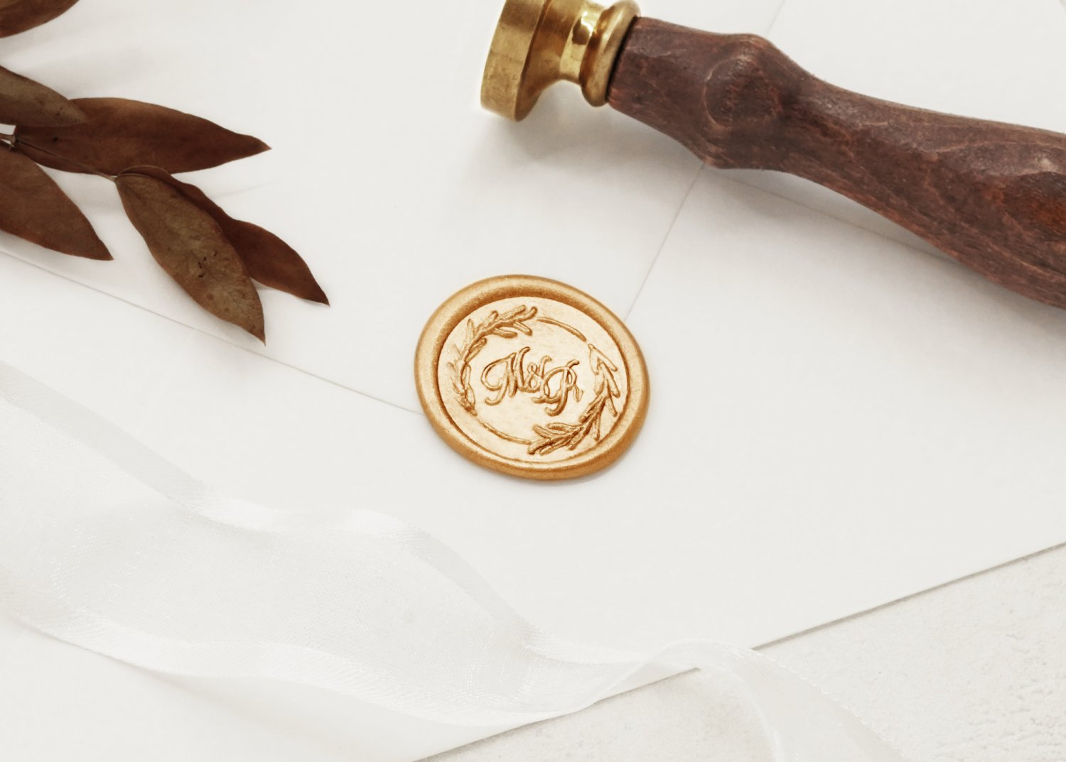 Hver gang dette lakseglstempel anvendes, efterlader det et sublimt og personligt præg på tryksagerne til brylluppet. Det skaber en følelse af elegance og personlighed, der er perfekt til at symbolisere jeres unikke kærlighedshistorie. Ønskes monogrammet også digitalt, kan det tilkøbes her: Monogrammer »