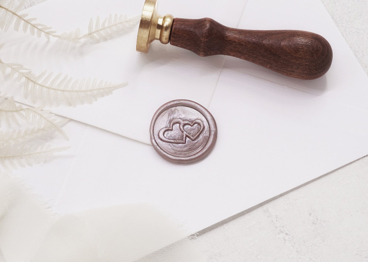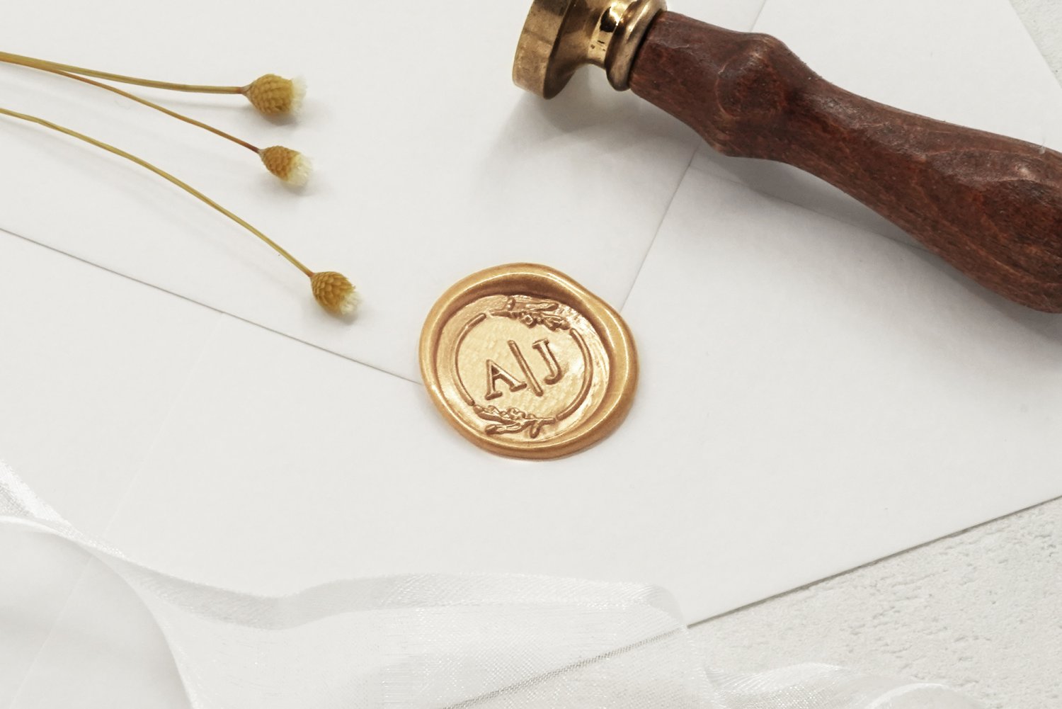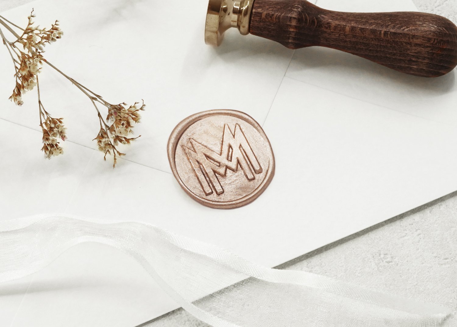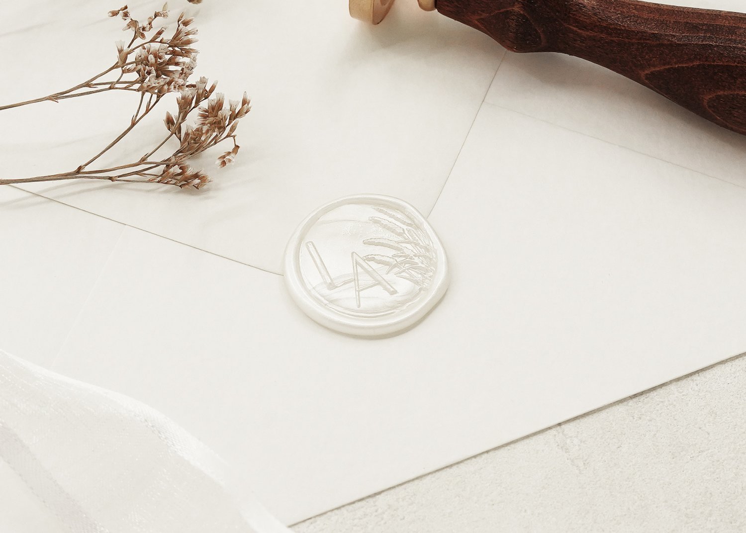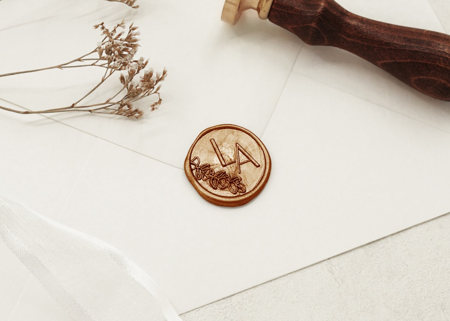 Giv invitationerne et elegant og stilfuldt helhedsindtryk med lakseglstempler. Gæsterne vil elske at åbne deres invitationer, når de ser det smukke og detaljerede aftryk på bagsiden af kuverten.