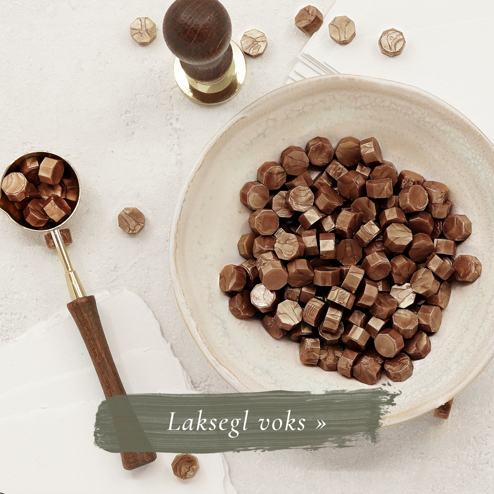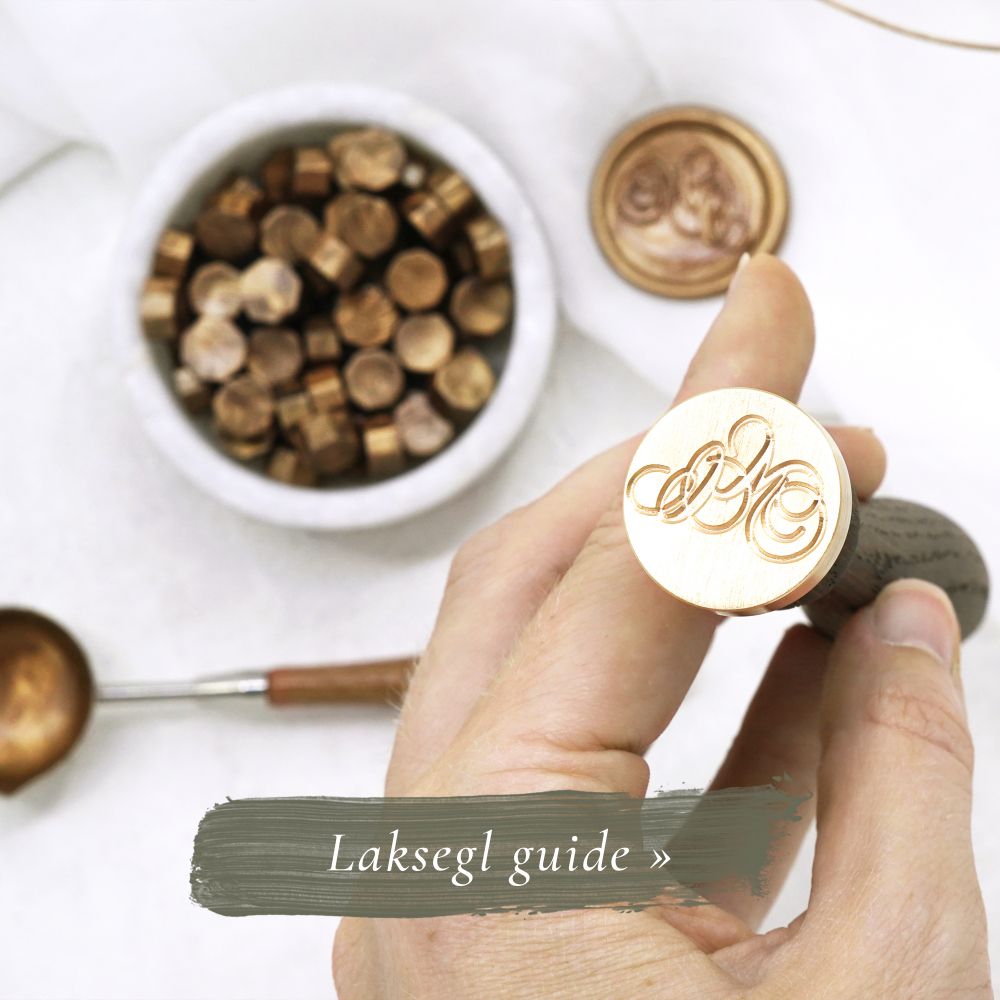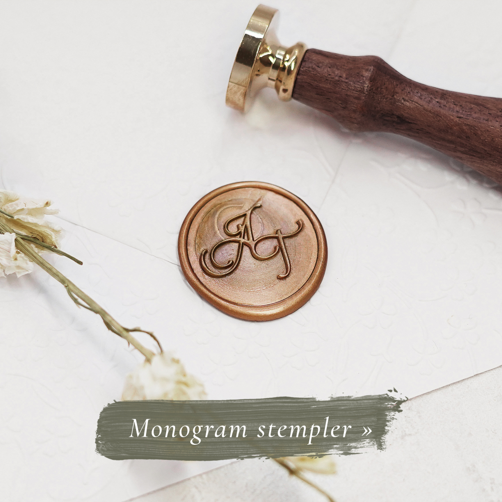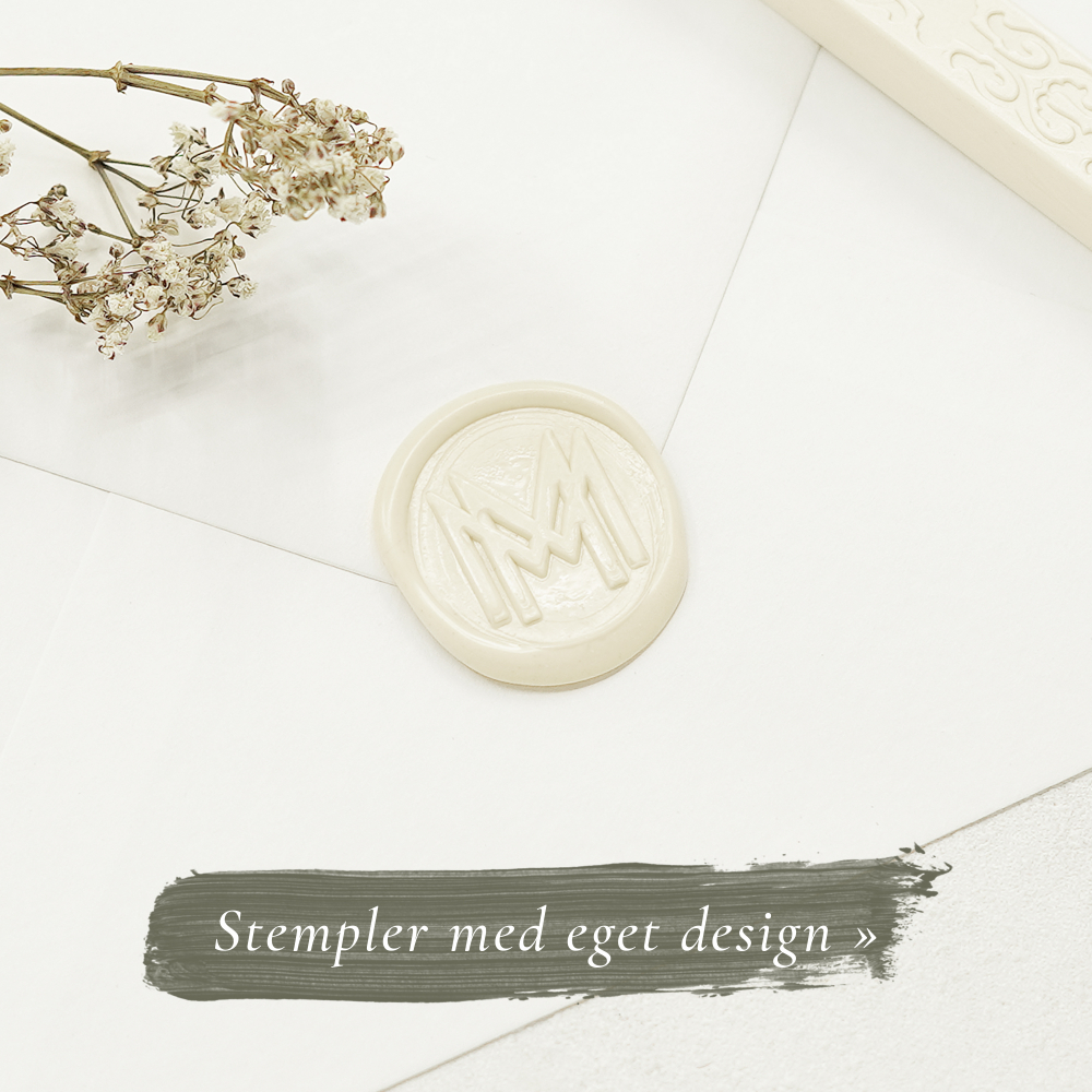 Lakseglstempler med monogram eller motiv bringer en klassisk og personlig elegance til invitationer, bordkort, menukort og andre tryksager. Perfekte til at skabe unikke detaljer, der gør jeres bryllupsdag endnu mere speciel og mindeværdig.