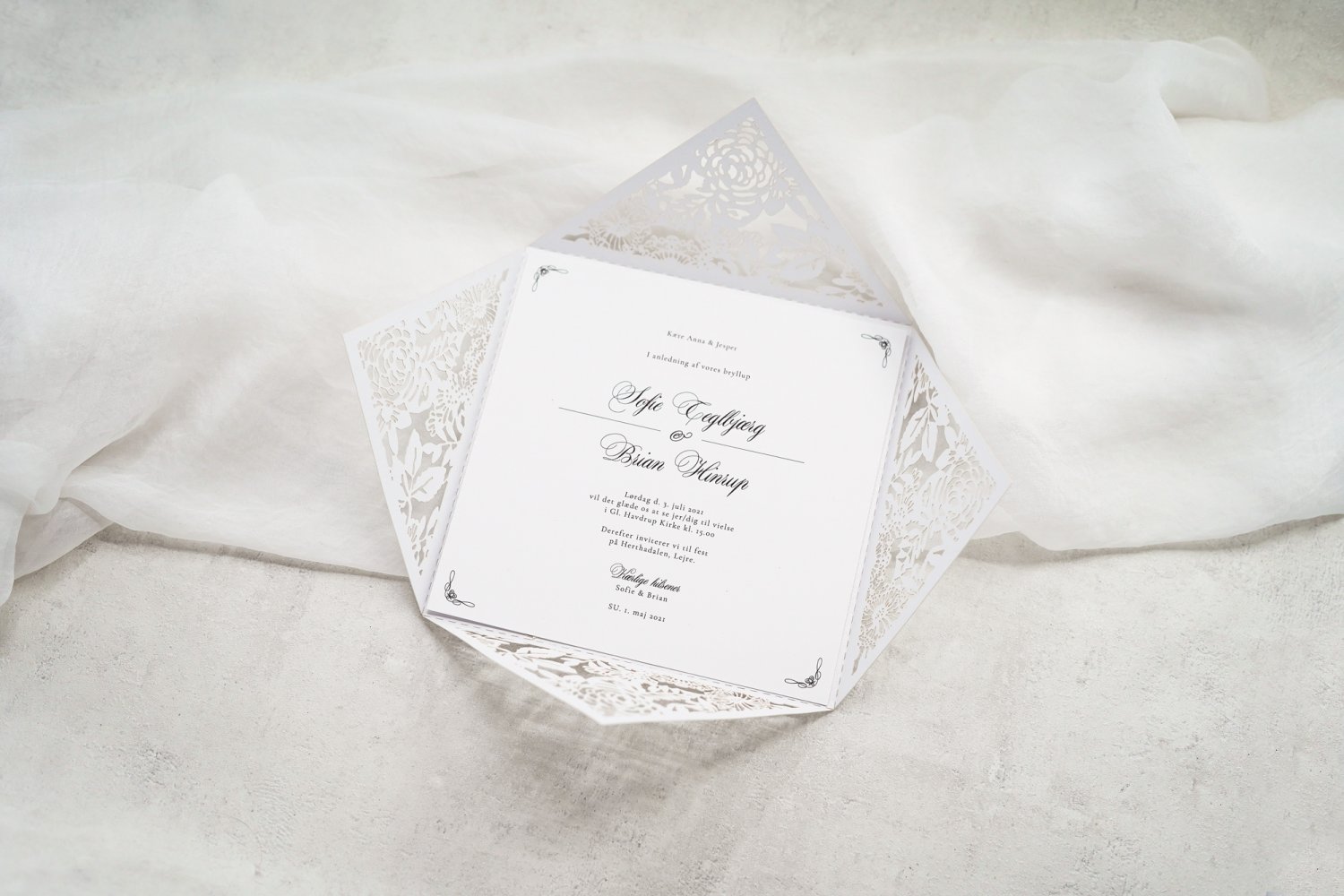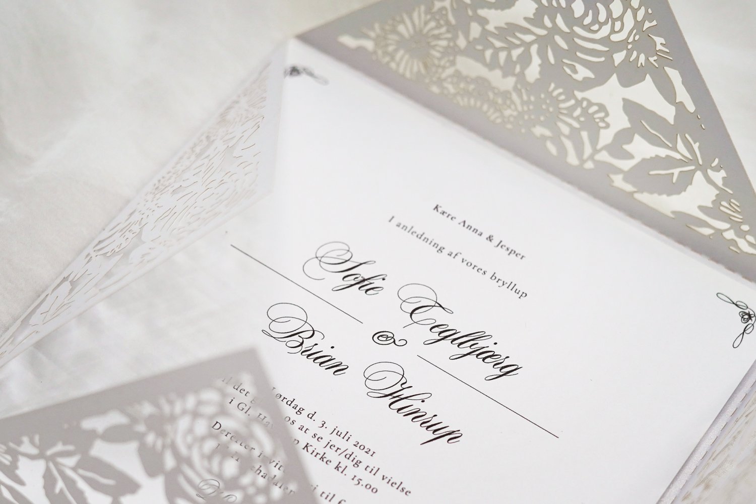 Brug for at se og føle vores invitationer i virkeligheden? Bestil sample »