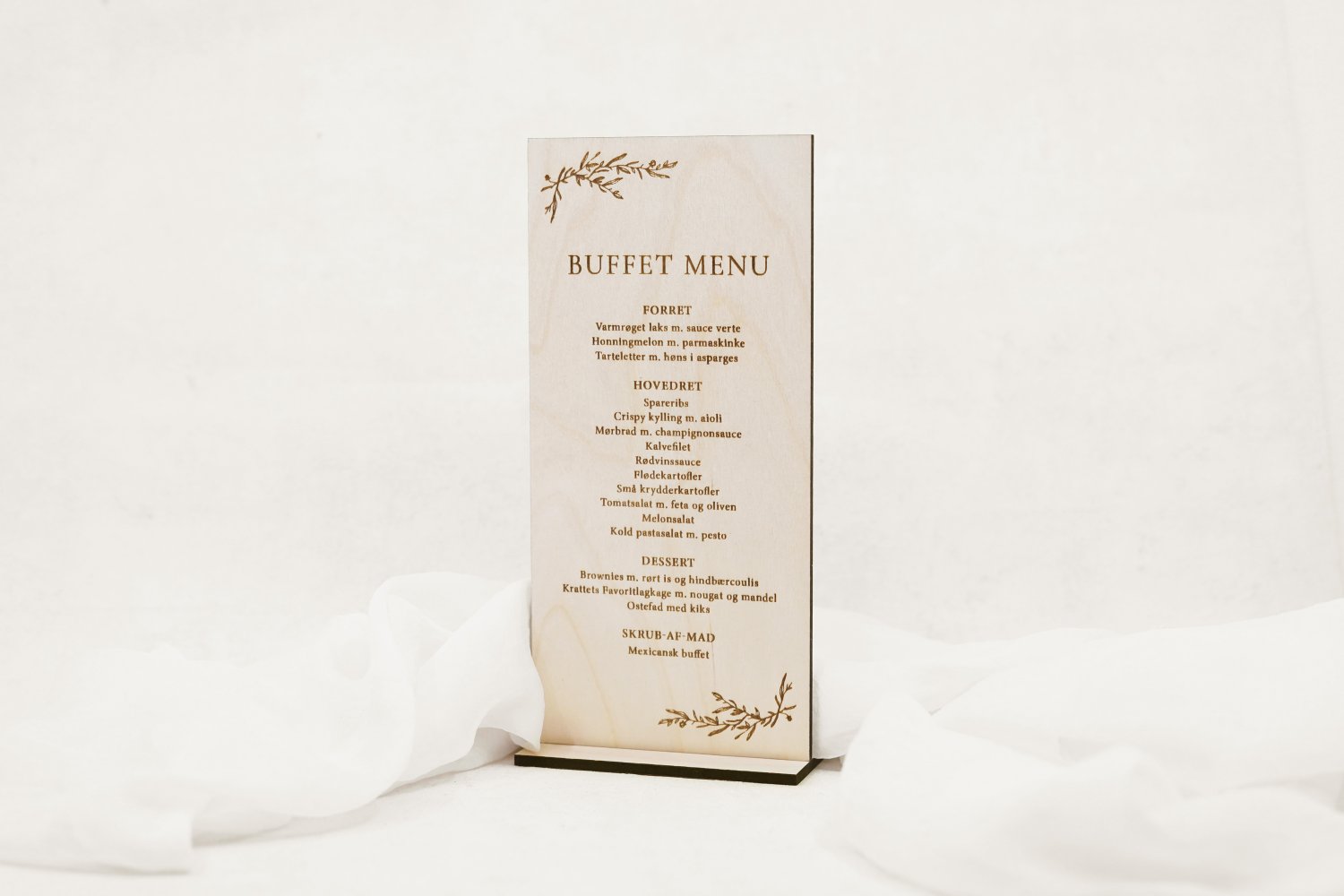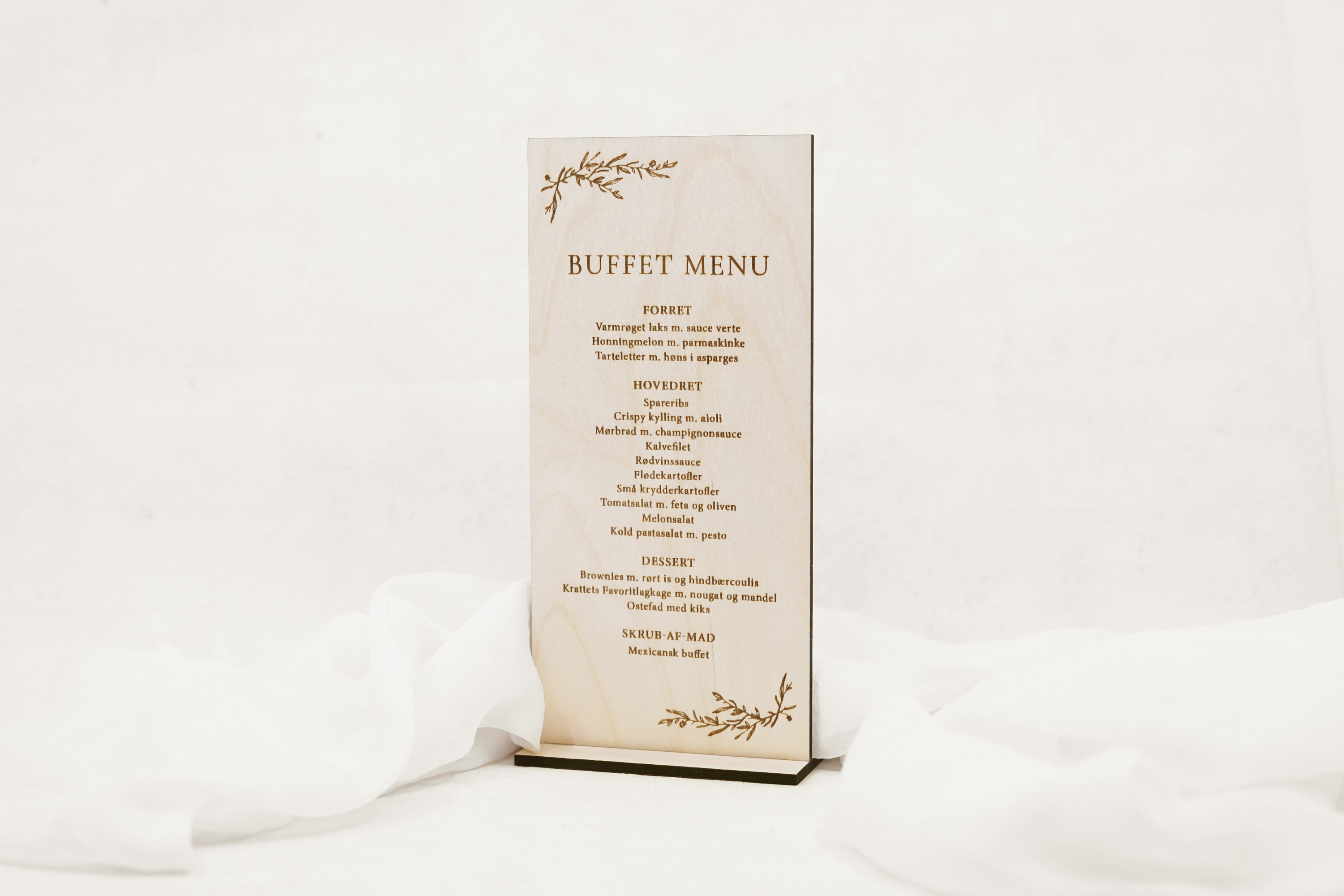 Disse personlige træ menukort er en fin måde at præsentere jeres bryllupsmenu på. Hvert skilt er dekoreret med smukke Lumen håndtegnede blomster og tilpasset til at vise jeres personlige menu.