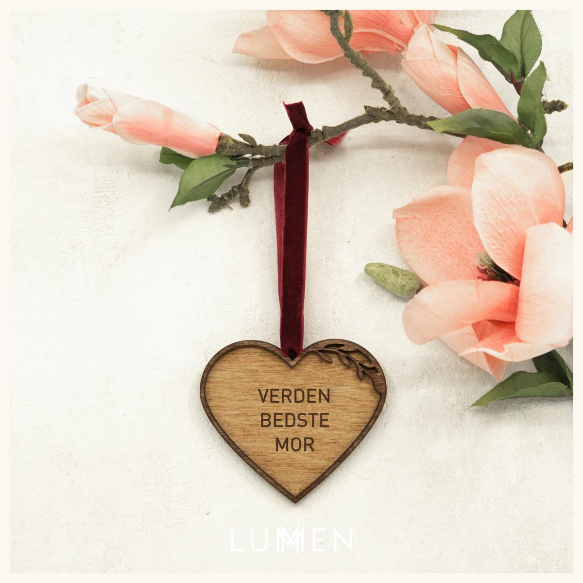 Glæd din dejlige mor med et personliggjort Mors Dag hjerte fra LUMEN. Vores hjerter udskæres i træ og graveres med en romantisk tekst i midten.