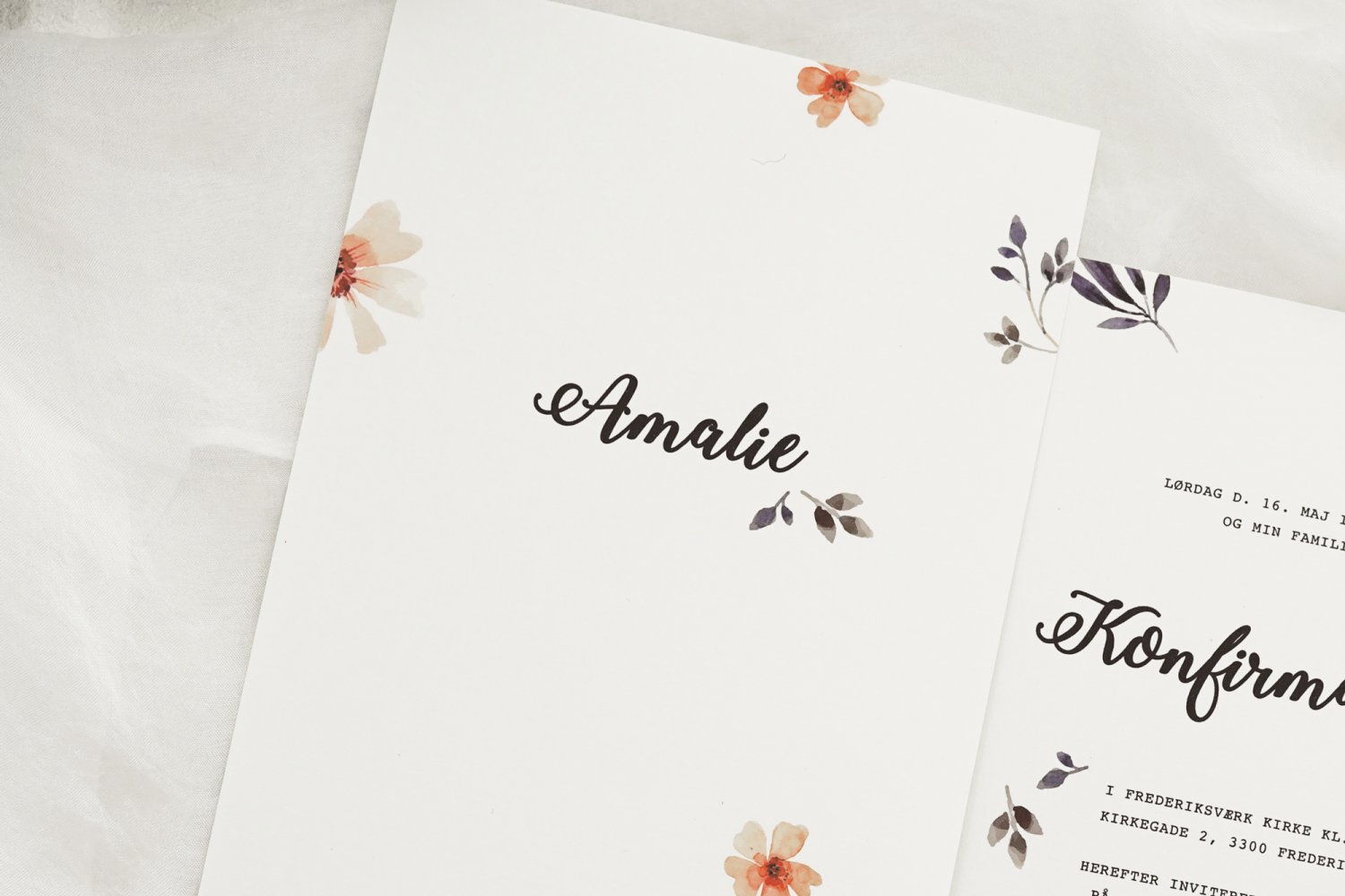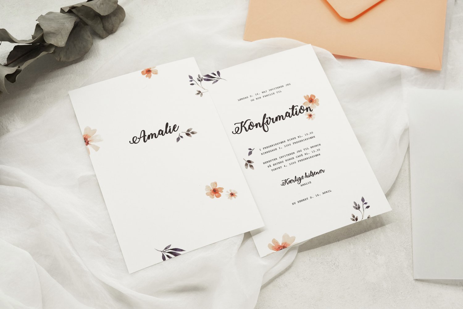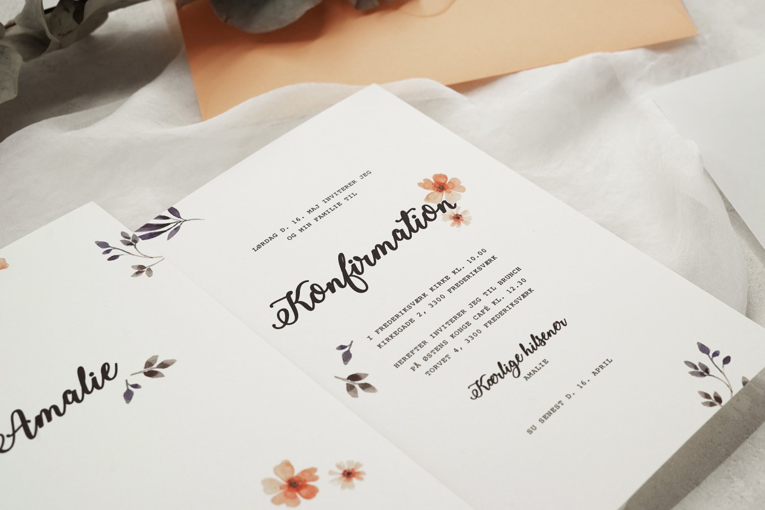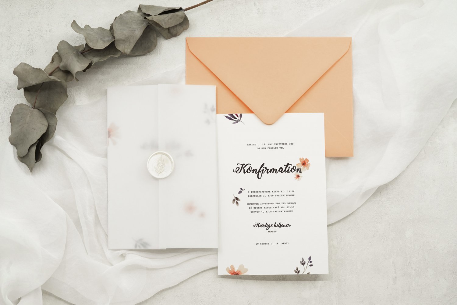 Varerne tages ikke retur, da de fremstilles med jeres unikke informationer. Læs om de forskellige materialer vi bruger til vores invitationspakker. Materiale info »