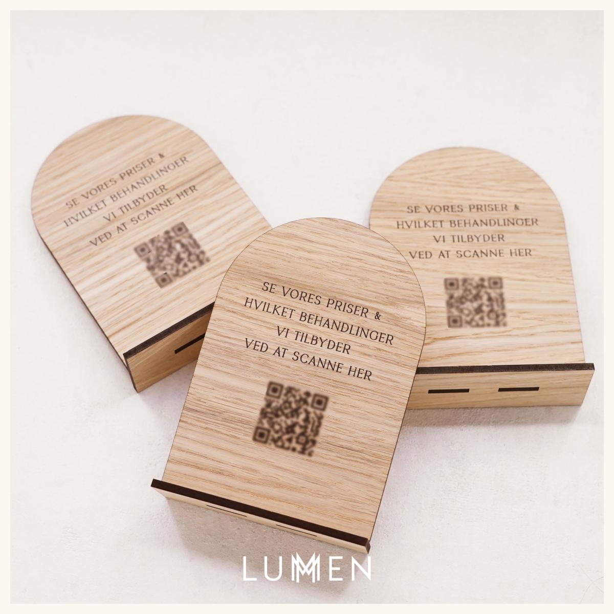 A6 infoskilte i træ med fri tekst til butikker og virksomheder. En rustik og stilfuld detalje til enhvert sted, der samtidig kommunikerer vigtige oplysninger på en elegant måde.