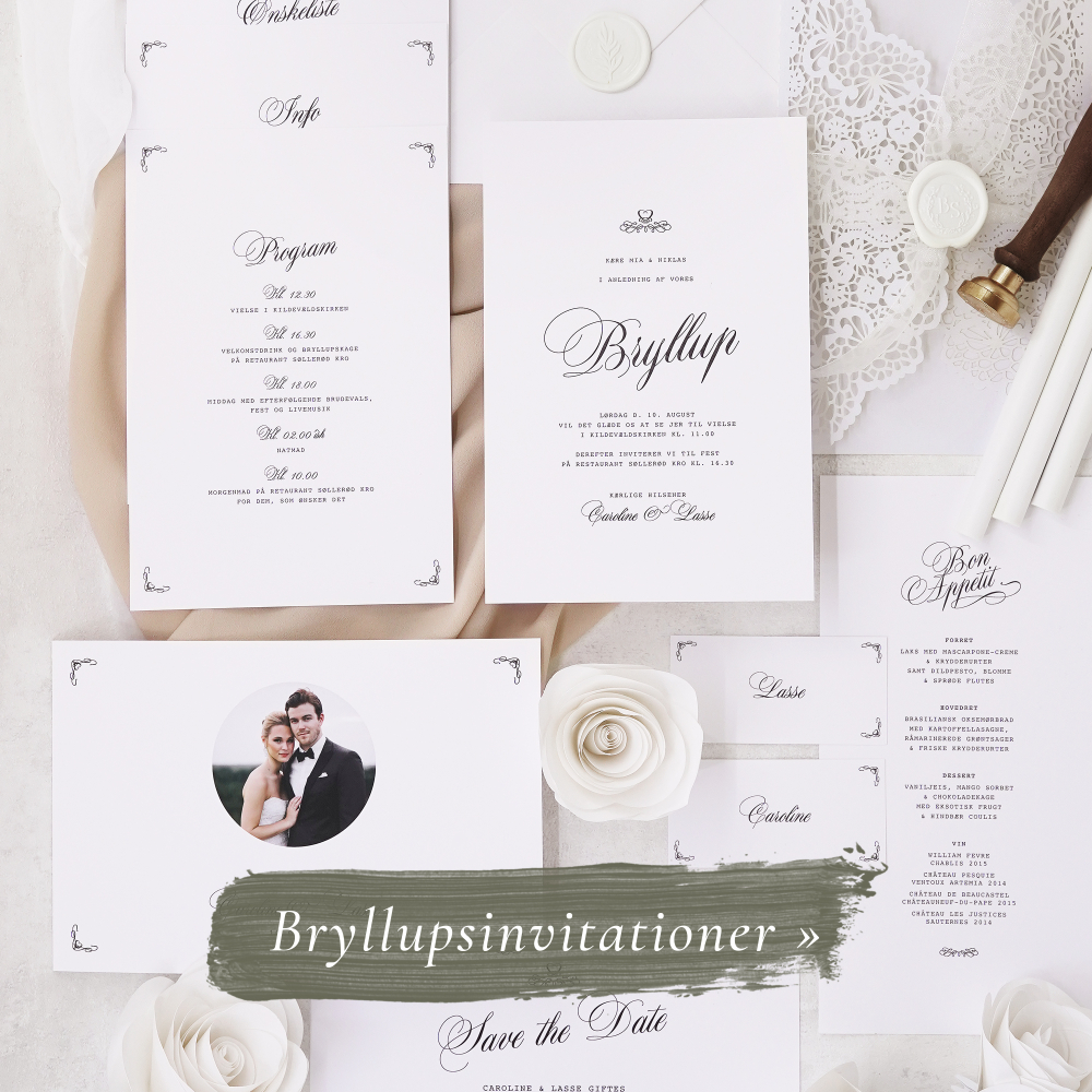 Vi er en online boutique specialiseret i chic og moderne bryllupsinvitation design, trykt på luksus karton. Vi tilbyder en række forskellige stilarter, herunder moderne bryllupsinvitationer, vintage bryllupsinvitationer, kalligrafi bryllupsinvitationer, klassiske bryllupsinvitationer, romantiske bryllupsinvitationer, premium bryllupsinvitationer og monogram designs.