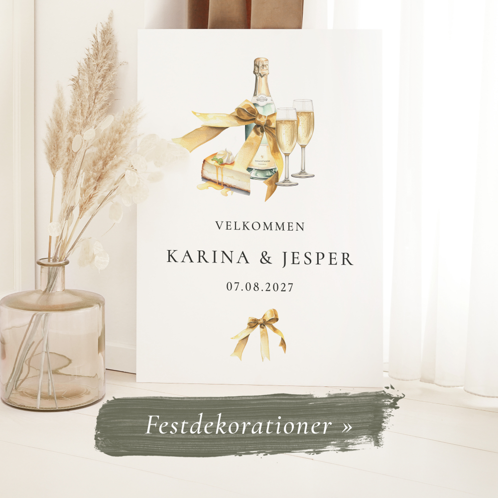 Udsmyk din bryllupsfest med stemningsfyldte dekorationer. Vi har nøje udvalgt hver enkelt produkt, så jeres dag bliver endnu mere uforglemmelig.
