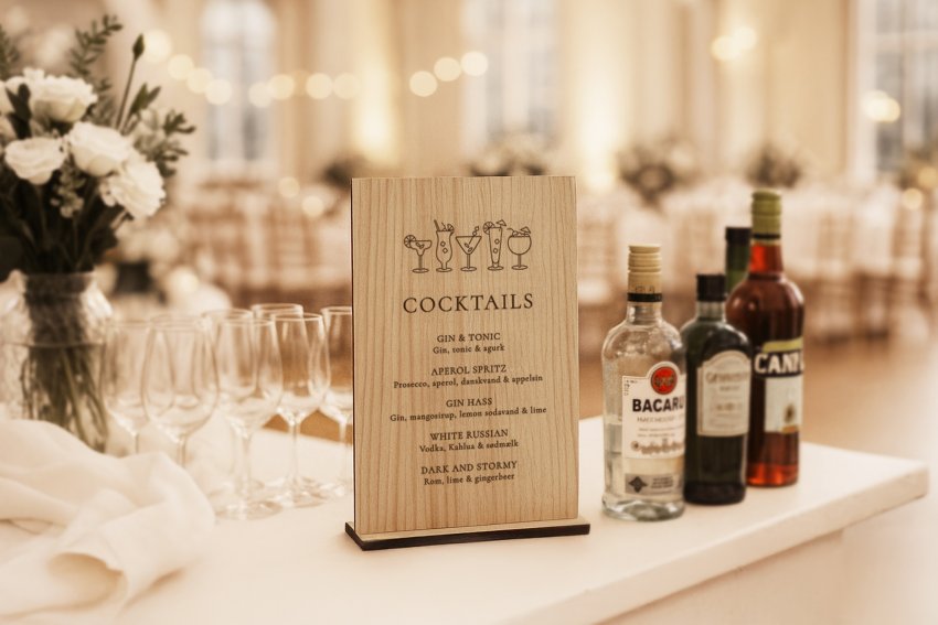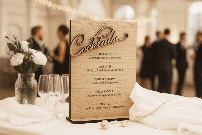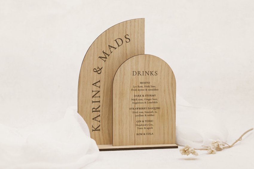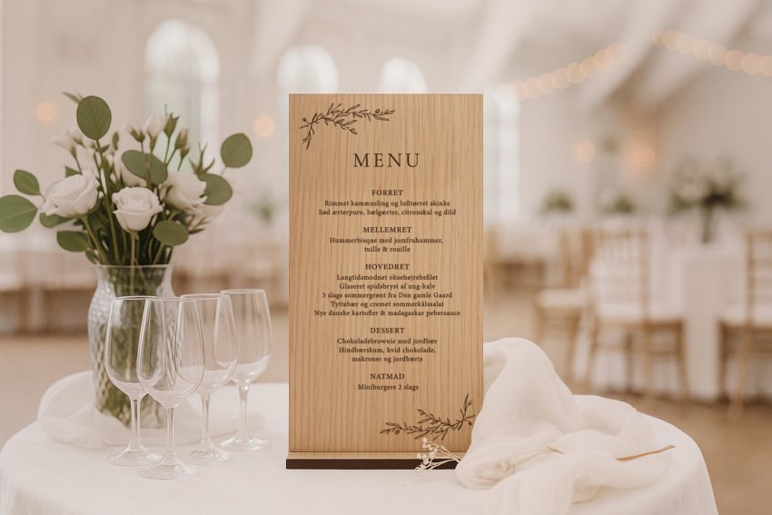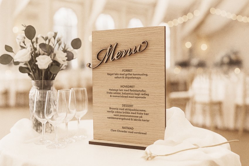 Borddækningen er en central del af bryllupsfesten, så skab en indbydende stemning med vores elegante bordkort, personligt bordpynt, menukort og bordnumre, der gør dagen hyggelig og uforglemmelig.