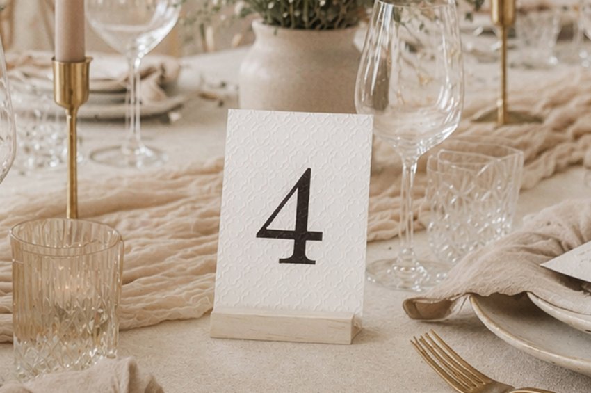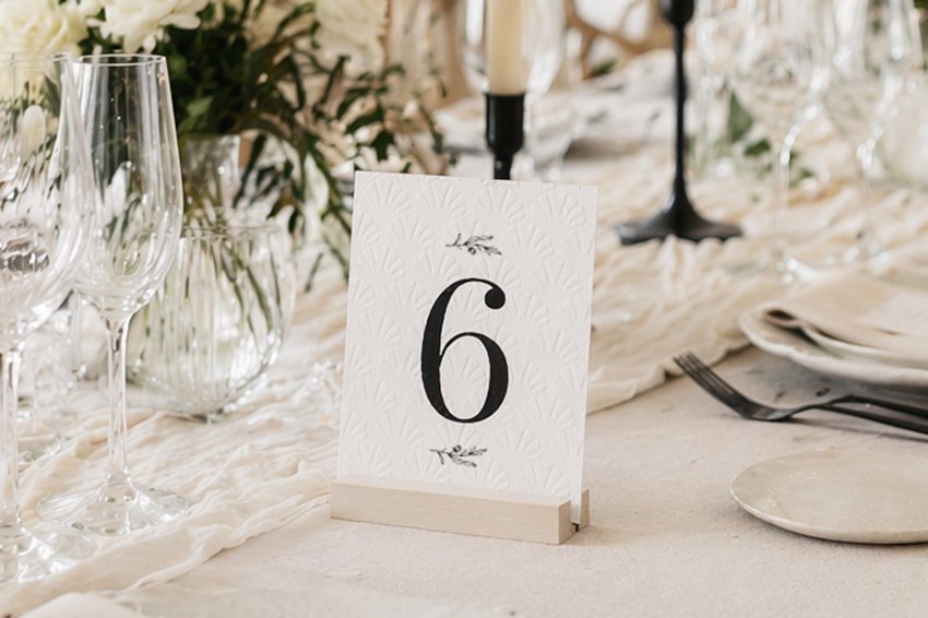 Bordnumre i karton til bryllup er en enkel og elegant løsning, der passer perfekt til både klassiske og kreative borddækninger. De kan tilpasses i farver, skrifttyper og design for at matche brylluppets stil.