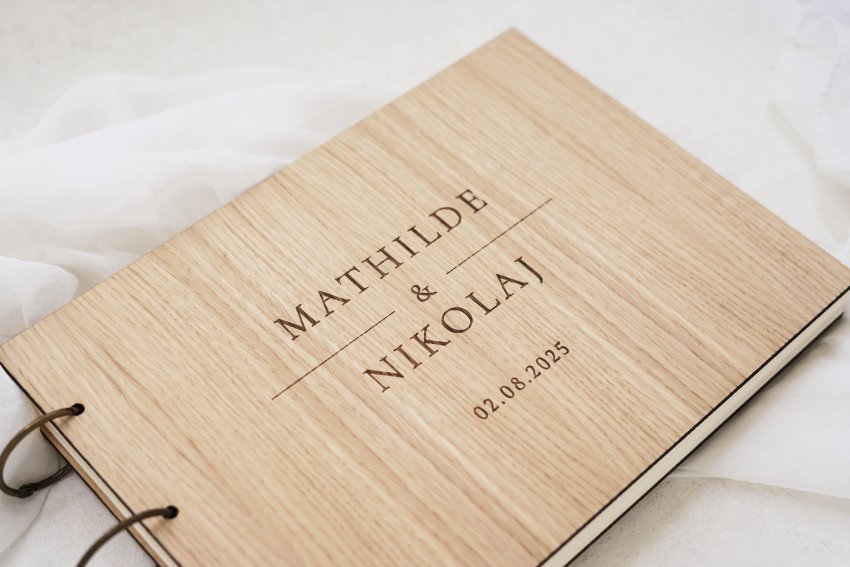 Lad gæstebogen træde frem i lokalet, så gæsterne får lyst til at skrive jer en lille hilsen. Vælg mellem elegante gæstebøger i velour, til rustikke bøger af træ og læder med brudeparrets navne og bryllupsdato til evigt minde.