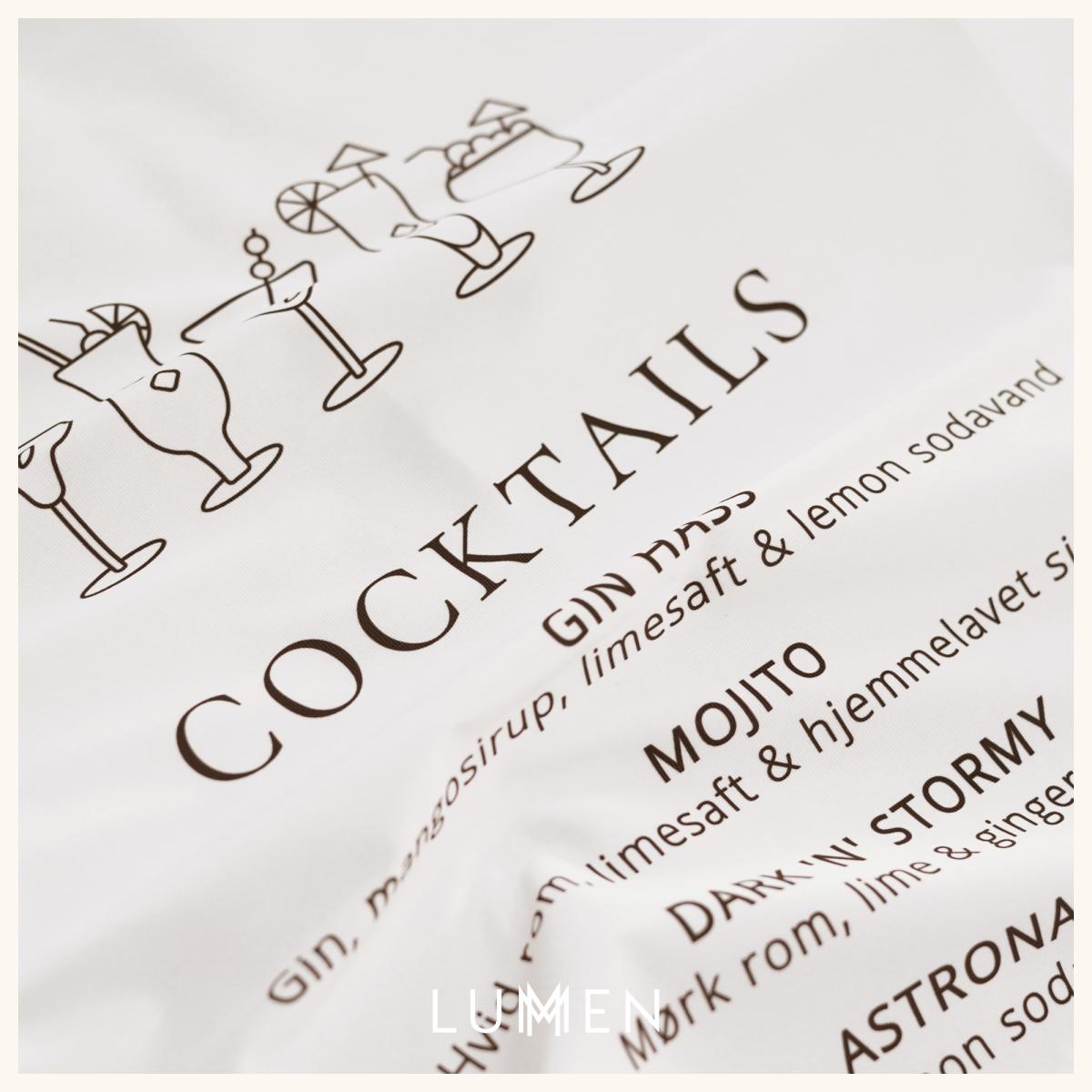 Stort barskilt i slidstærkt stof med smukke illustrationer, der giver barområdet et dekorativt og indbydende udtryk.