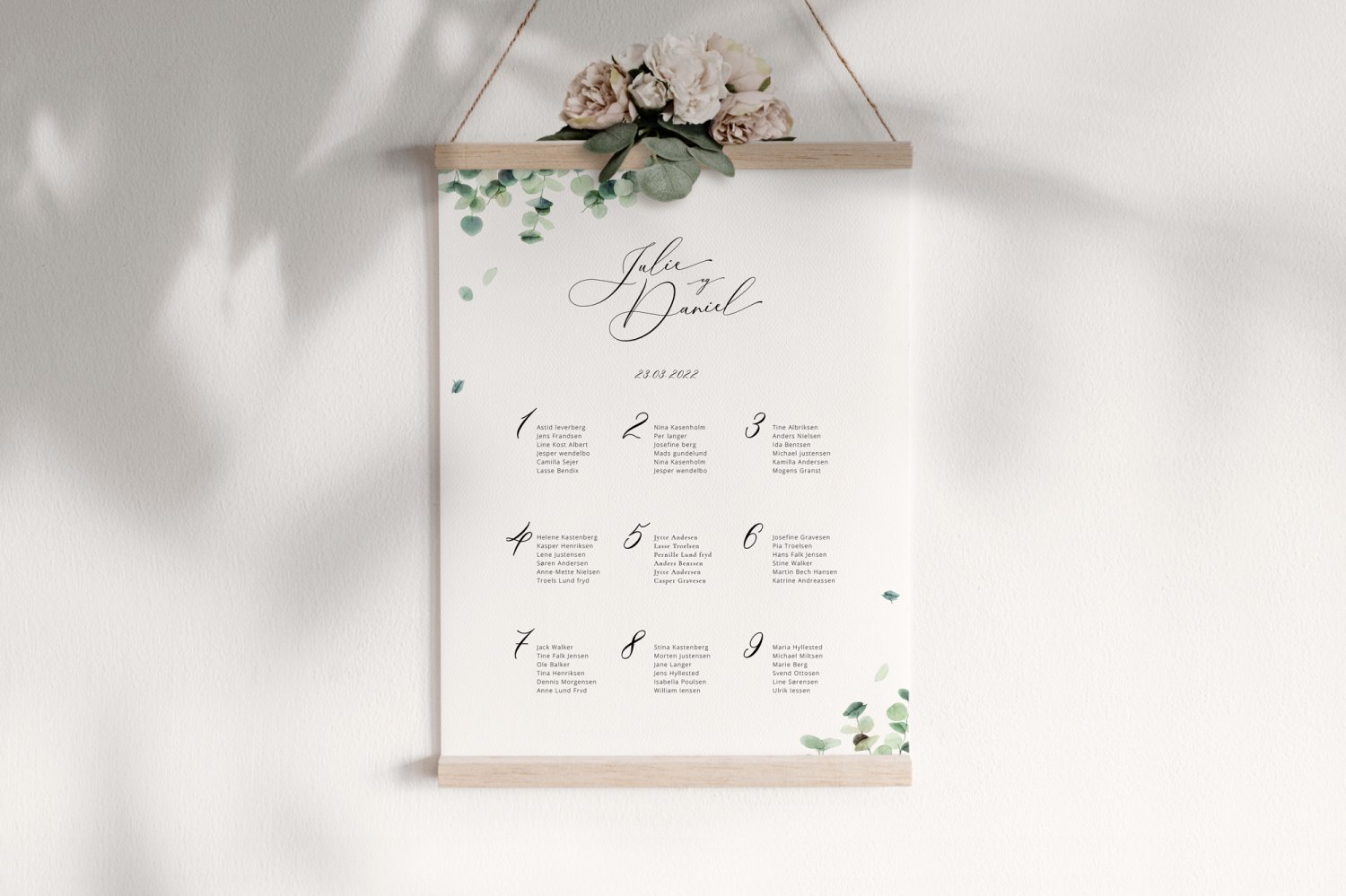 Træramme til bordplaner, velkomstskilte og posters. Rammerne er todelt og holdes samlet møtrikker, der også holder skiltet på plads. Den ene rammeliste har snor til ophængning.