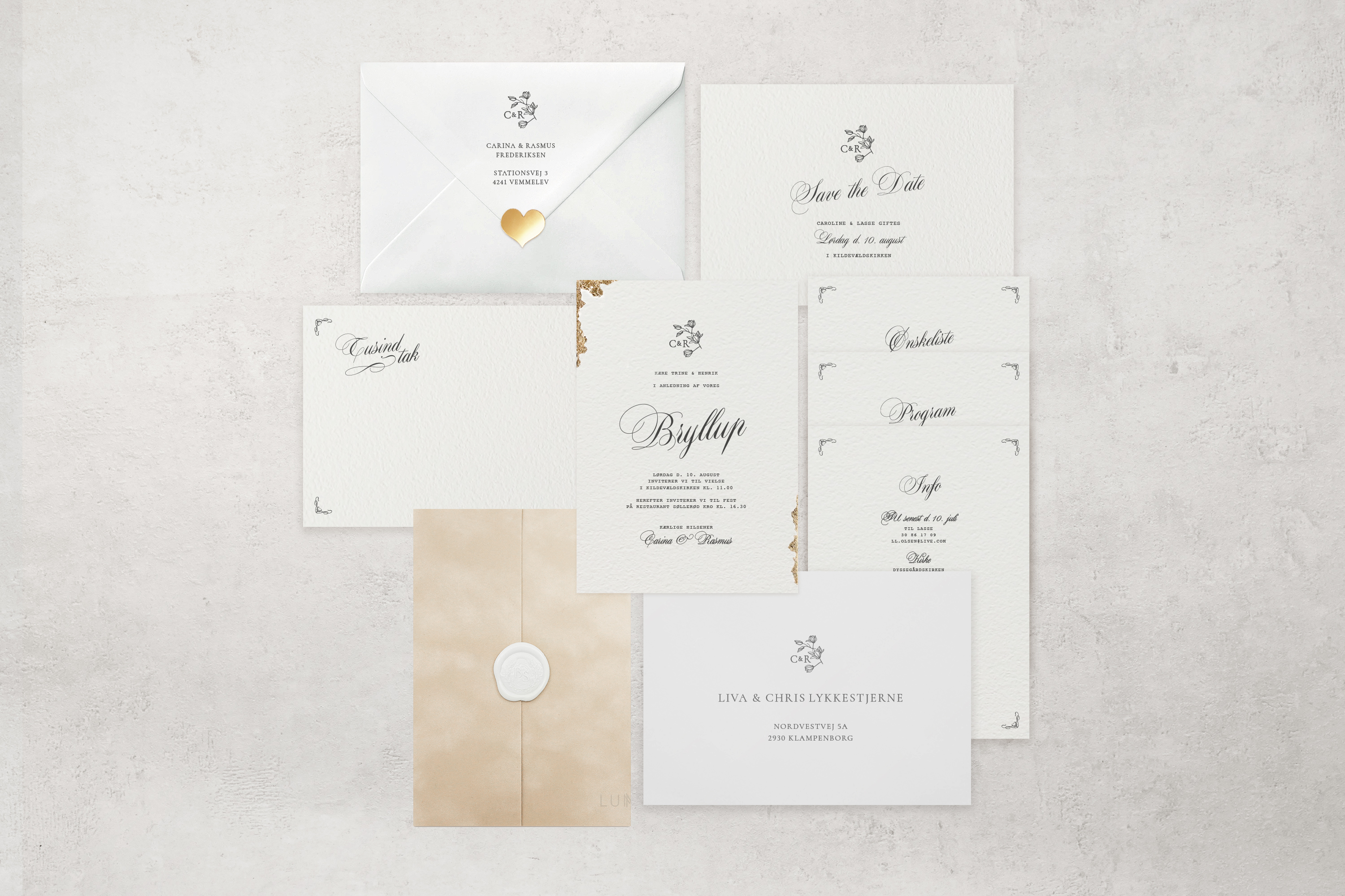 Sørg for, at jeres gæster reserverer datoen med Save the Date-kort fra Venus-kollektionen – et tidløst og klassisk design inspireret af kærlighedsgudinden, med elegante detaljer og smuk kalligrafiskrift.